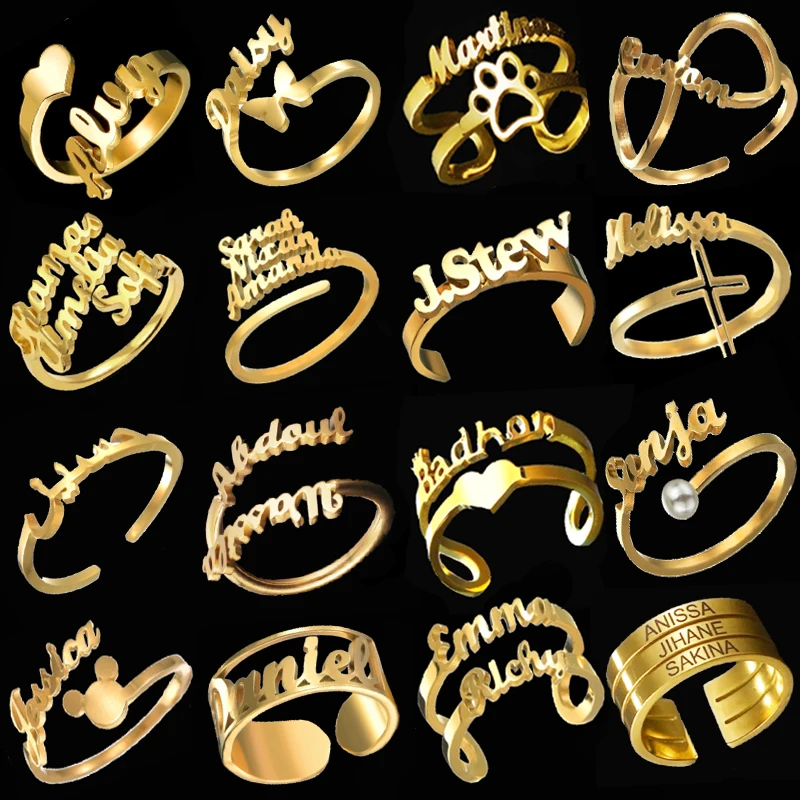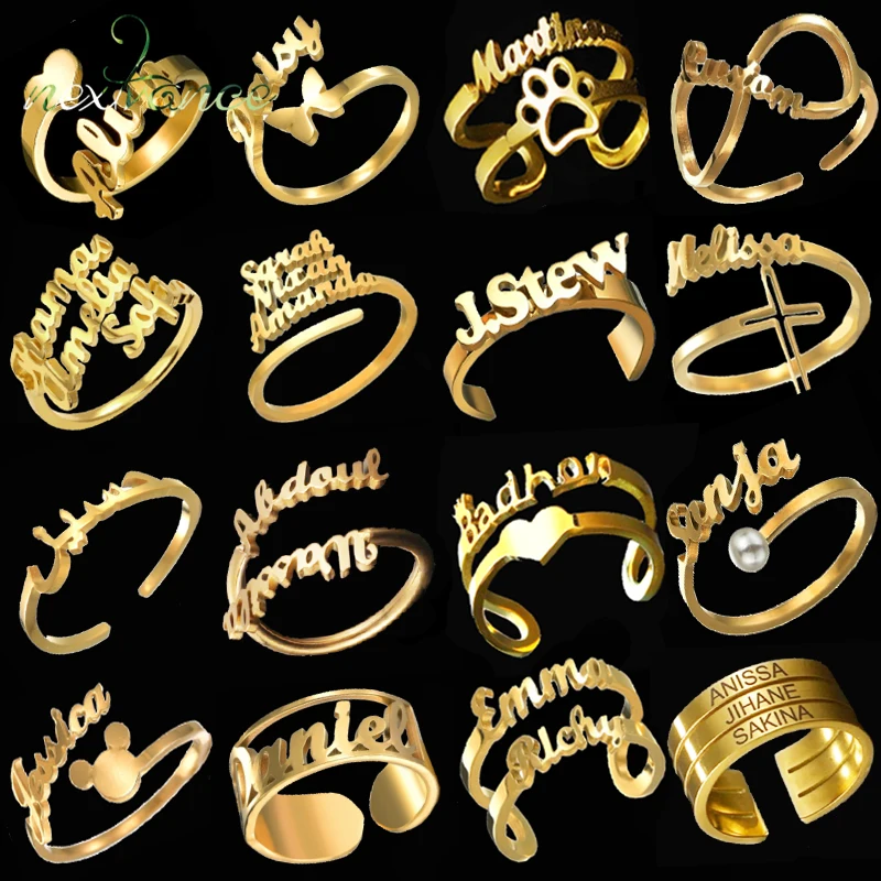 Nextvance индивидуальные именные кольца из нержавеющей стали для женщин настраиваемое Золотое регулируемое обручальное кольцо с сердцем ювелирные изделия для пар
