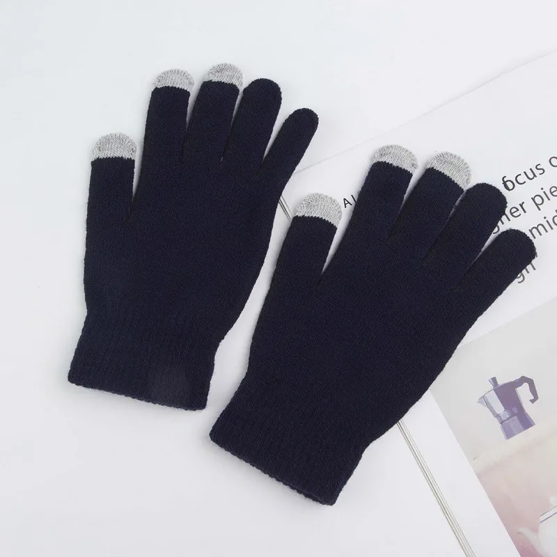 Женский шарф и перчатки, зимние вязаные плотные теплые женские и мужские однотонные облегающие шапки в стиле ретро, мягкие перчатки для сенсорного экрана