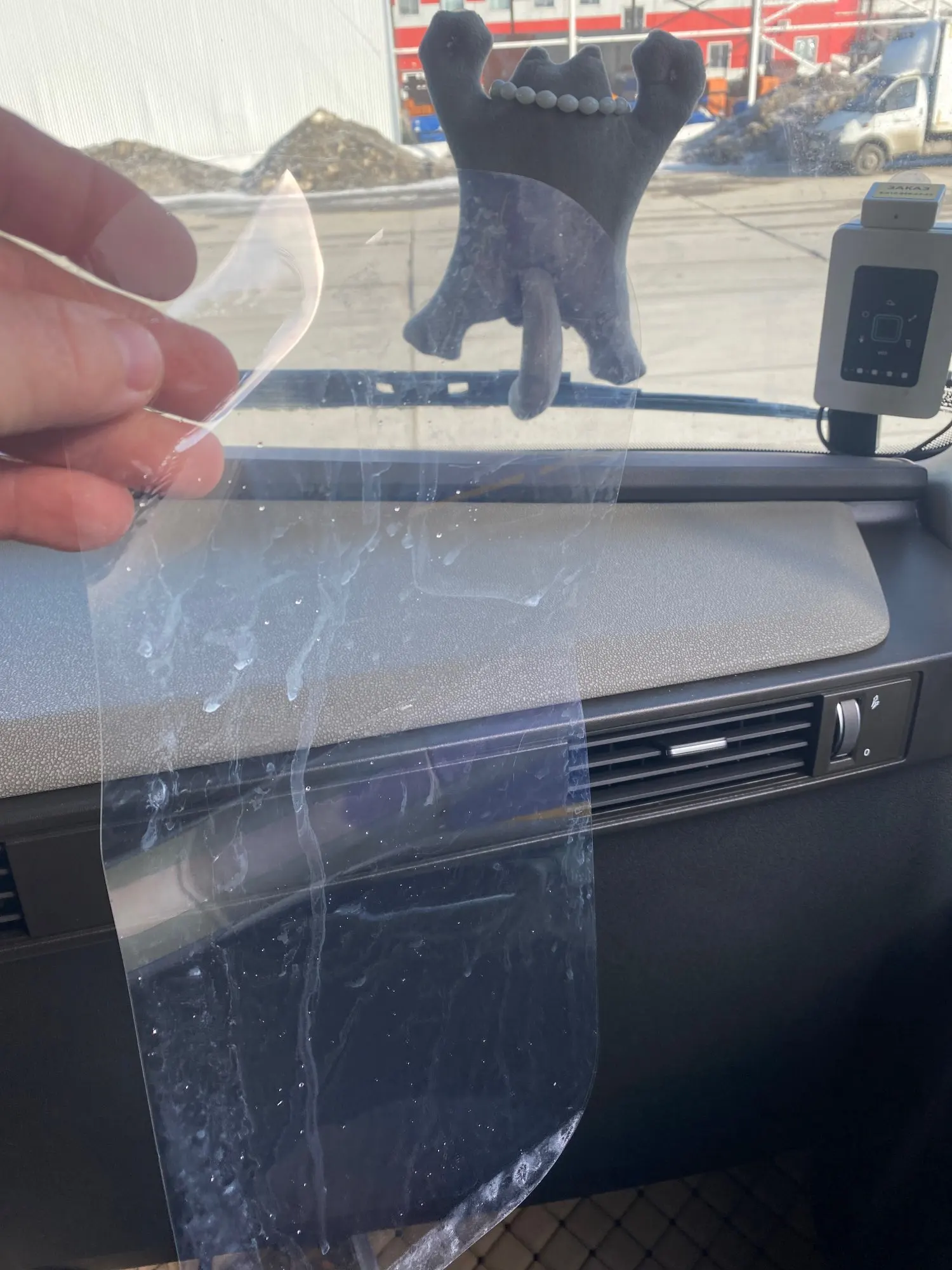 Наклеил, избавиться от пузырьков не удалось! Брызгая стеклоочистителем, вода не стекает, края отклеиваются, закатал по новому! Сьезжу в рейс, посмотрю как оно работает, но что то у меня не доверие к этой плёнке.