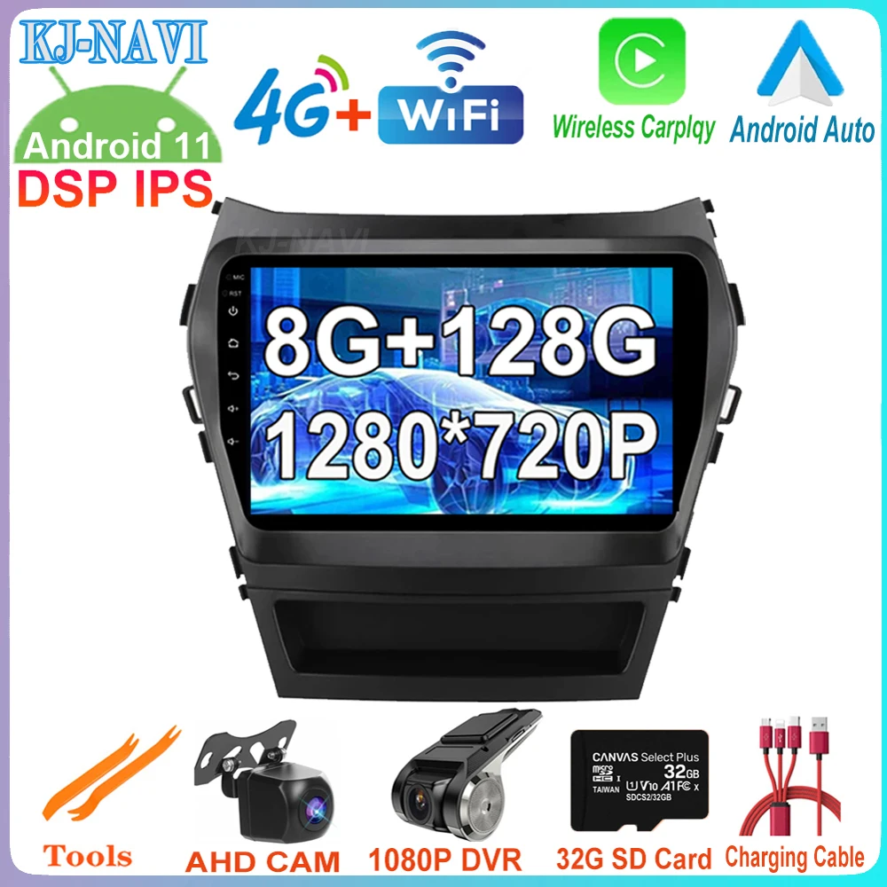 Автомобильный мультимедийный плеер, экран 9 дюймов 1280*720P IPS, Android 11, для Hyundai Santa Fe 3 IX45 2013-2016, радио, видео, GPS-навигация