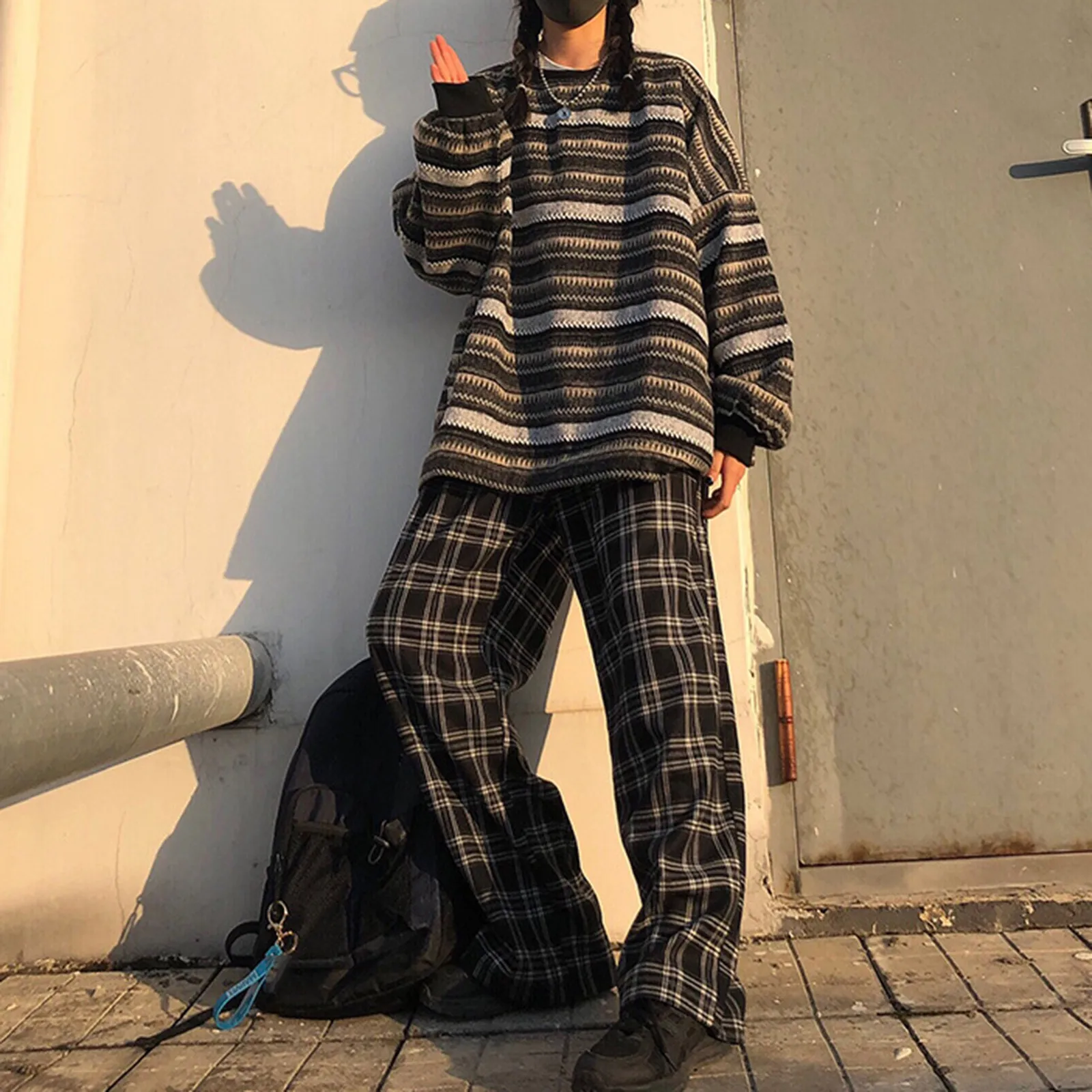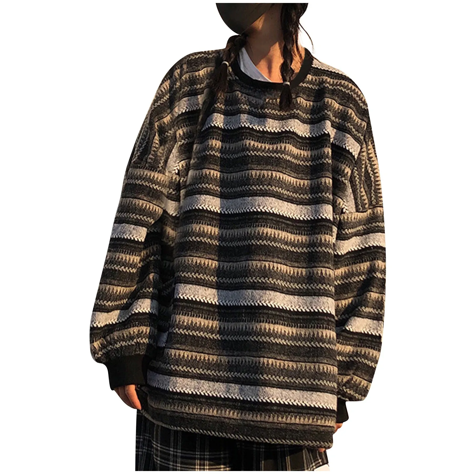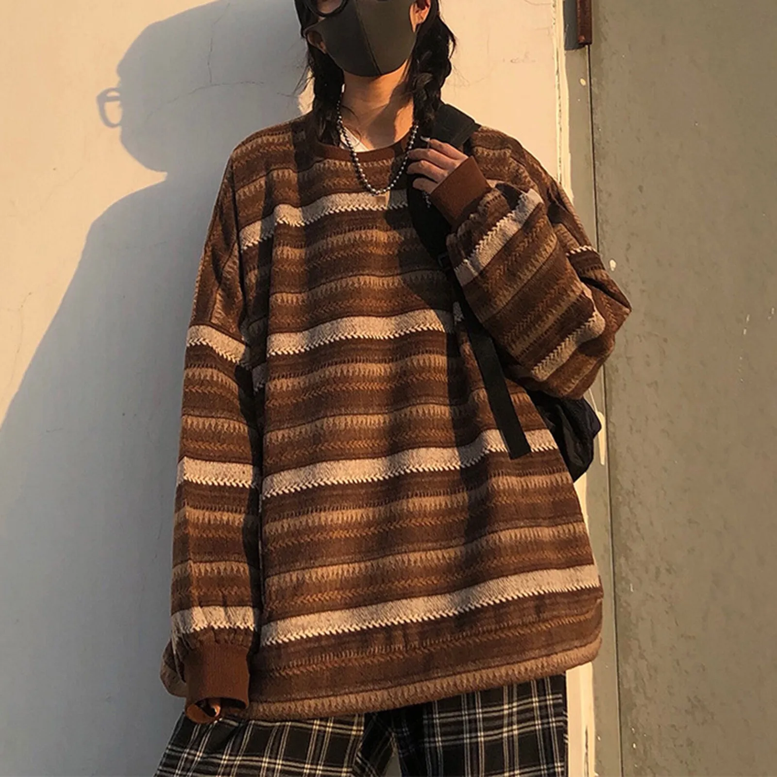 Особенности: повседневный, свободный, в полоску, нейтральный стиль, японский стиль, увеличенный дизайн, теплый и подходит для осени и зимы