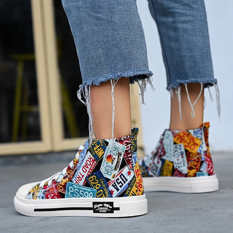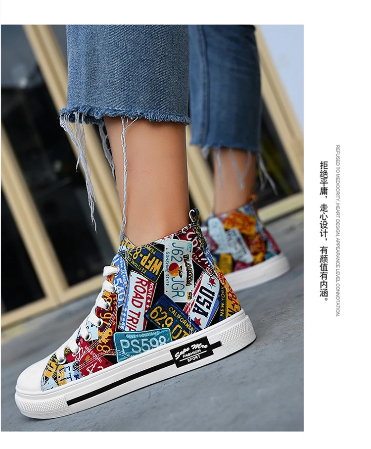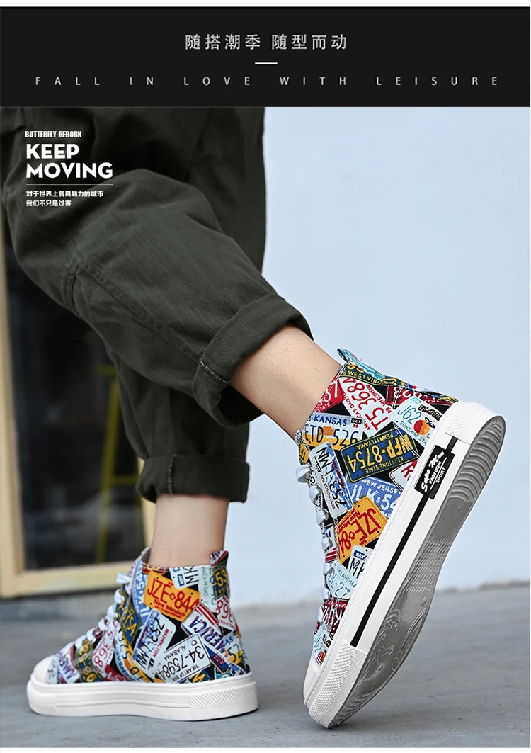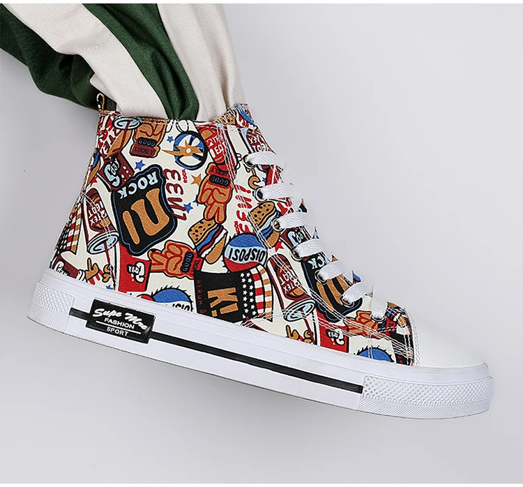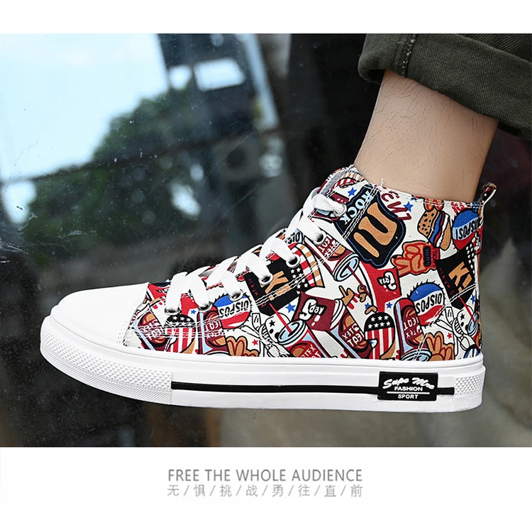 Кроссовки мужские холщовые, модная дизайнерская спортивная обувь на платформе, с граффити, повседневные