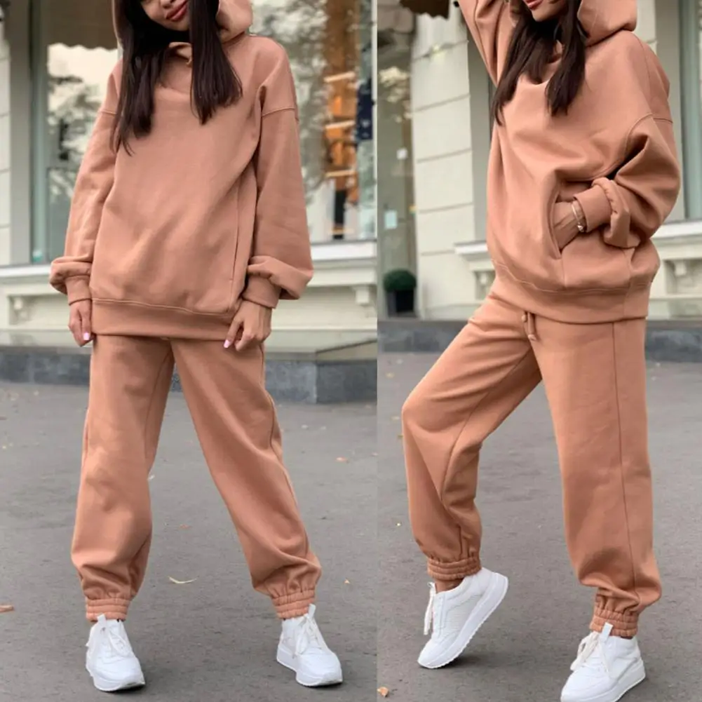 Спортивный костюм, однотонная свободная футболка, Женская толстовка с длинным рукавом и штаны, одежда, спортивная одежда на весну