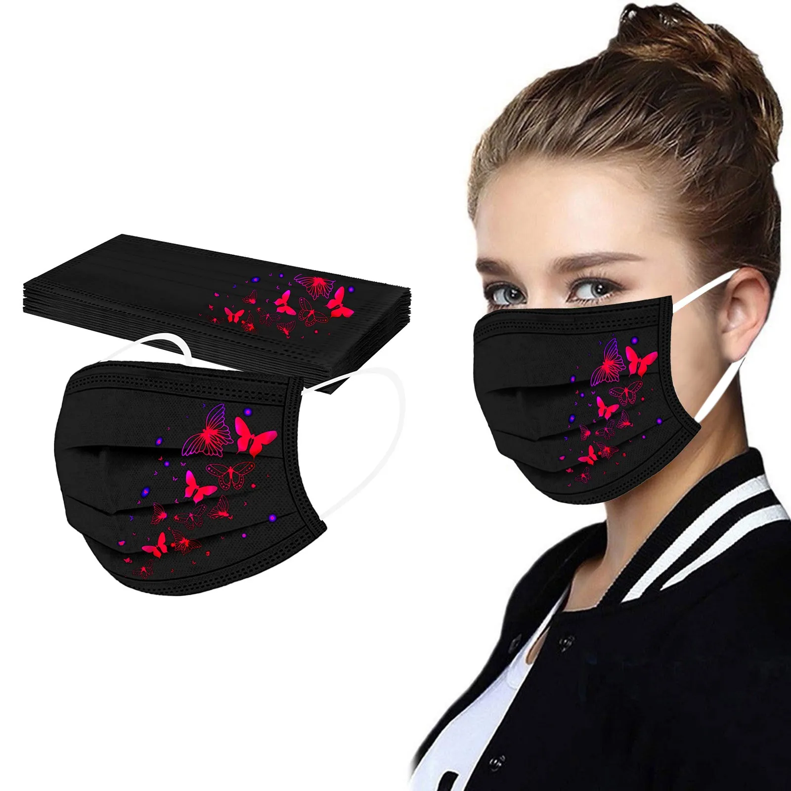 Маска Нетканая для взрослых с принтом бабочки, одноразовая Защитная...
