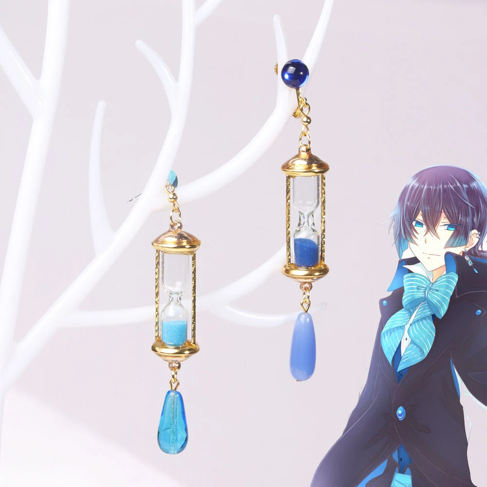 Чехол для косплея аниме «Исследование ванитас», серьги без карта, голубые хрустальные светящиеся серьги «песочные часы» для унисекс, ювелирное изделие, подарок