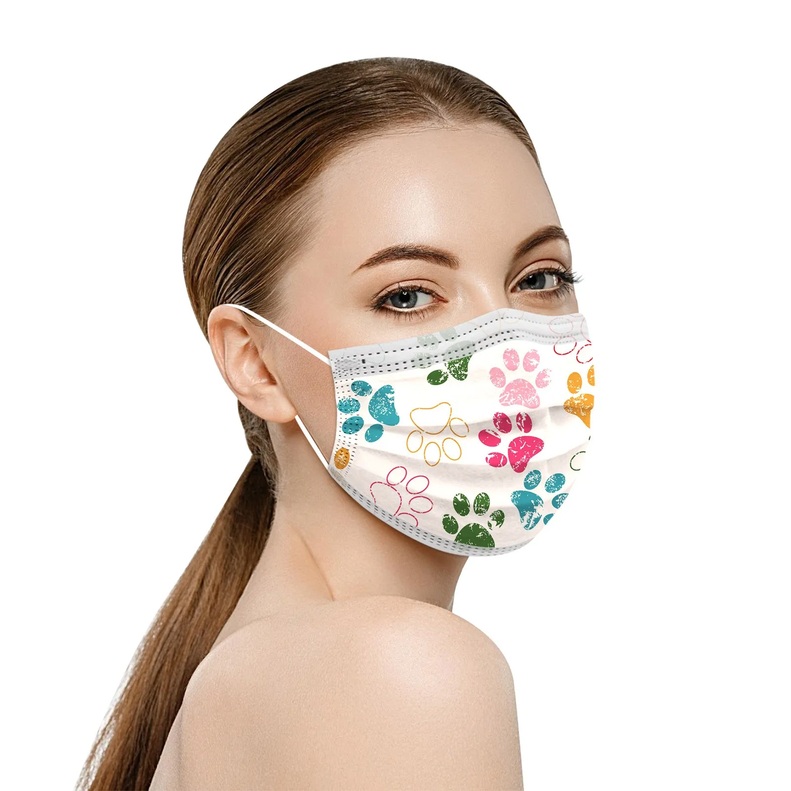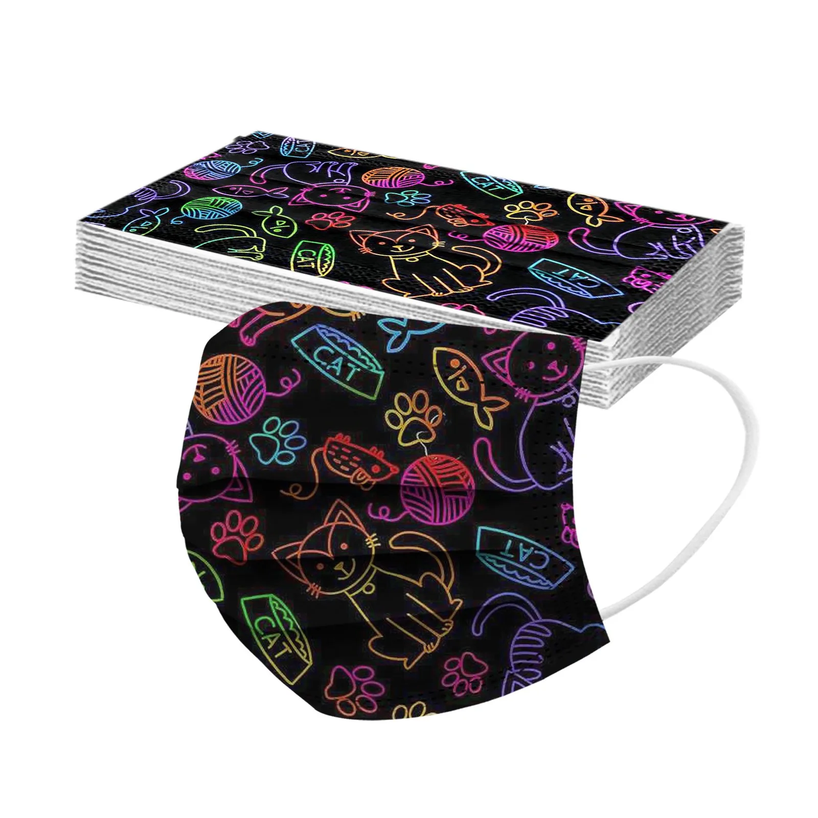 10 шт., трехслойная Защитная дышащая маска с принтом кошачьей лапы