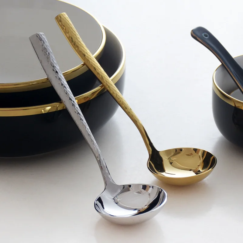 Ложка для супа из нержавеющей стали, Сервировочная ковш, посуда, кухонные принадлежности для супа, золото, серебро, большой ковш, суповая ковша с ручкой