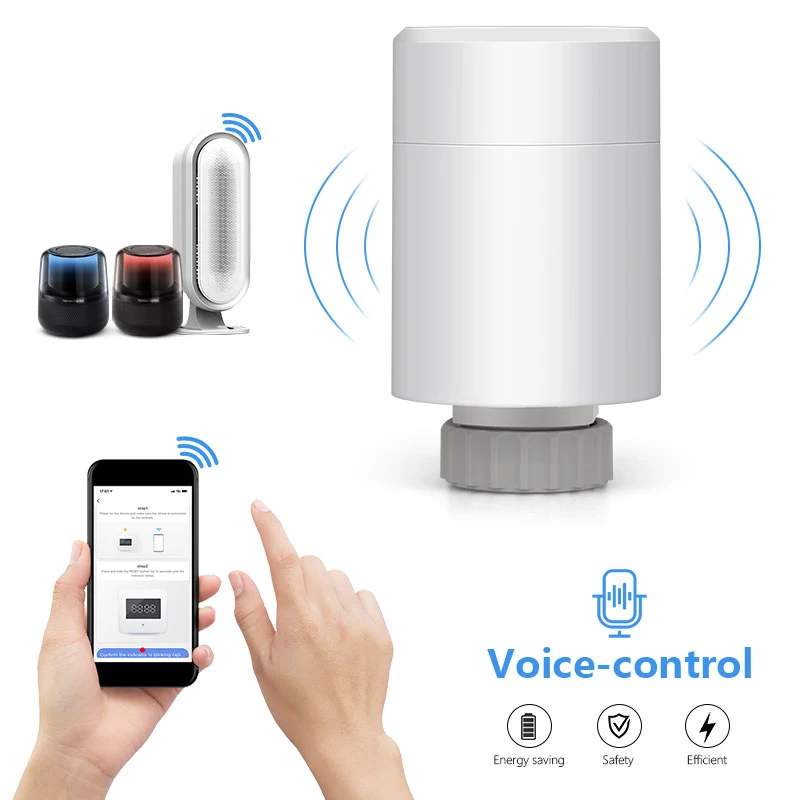 4. Умный термостат радиатора Tuya ZigBee: термостат радиатора с ЖК-цифровым дисплеем и простой новой ручкой для простых настроек. Он разработан с двумя секциями аккумуляторов AA, который является специальным клапаном, использующим совместно с нагревательным радиатором для энергосберегающих. Искусственно устанавливаемая температура в помещении, в основном используется в системе напольного отопления для контроля закрытия и открытия трубы.