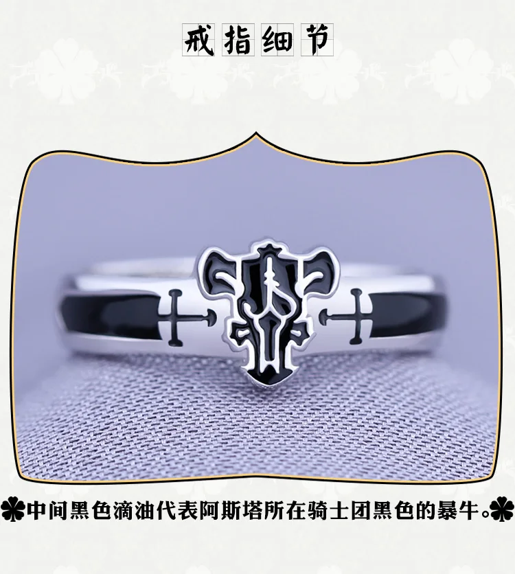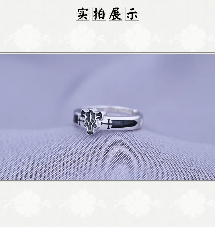 Японское аниме черный клевер Аста Косплей S925 Серебряное кольцо модные регулируемые мужские и женские кольца на палец ювелирные изделия на день рождения рождественские подарки