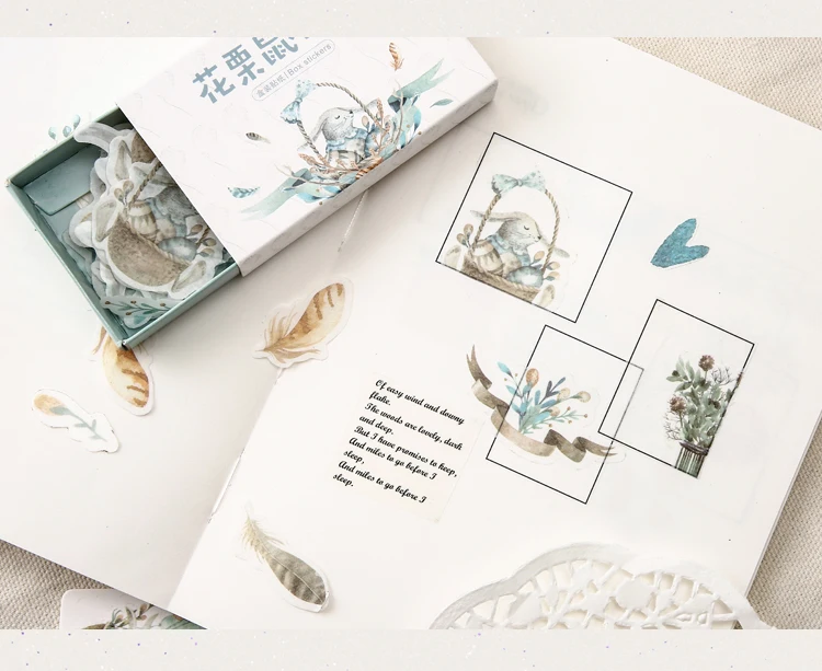 40 шт.корт. Кавайные наклейки, упакованные в коробку, Foodie, леса,...