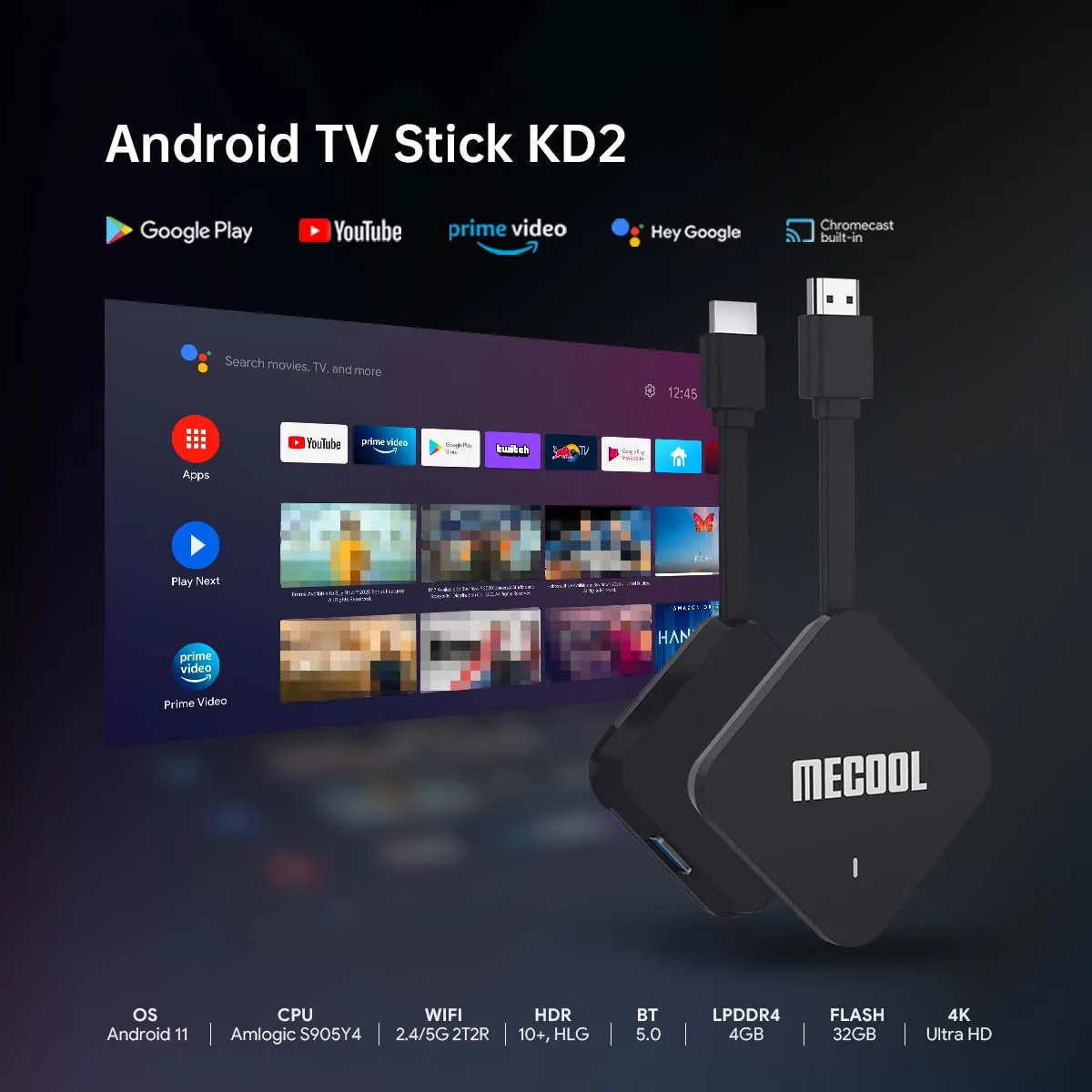 ТВ-флешка Mecool KD2, Amlogic S905Y2, Android 10, 2 + 16 ГБ, 1080P, 4K, Двойной Wi-Fi, BT4.2