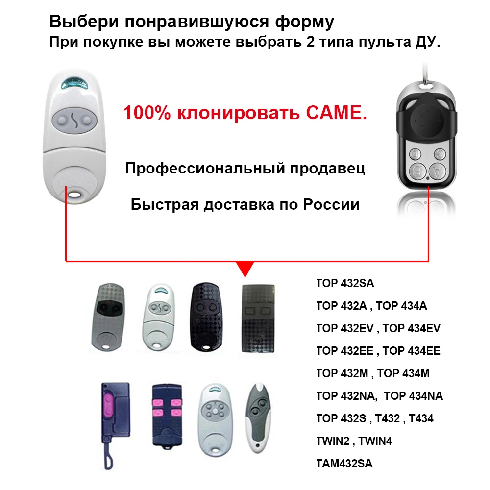 Пульт для шлагбаумов и ворот CAME TOP 432NA 432EE 432SA (2 КНОПКИ) Брелок-клон для ворот с дистанционным управлением 433MHz 433,92 МГц с фиксированным кодом