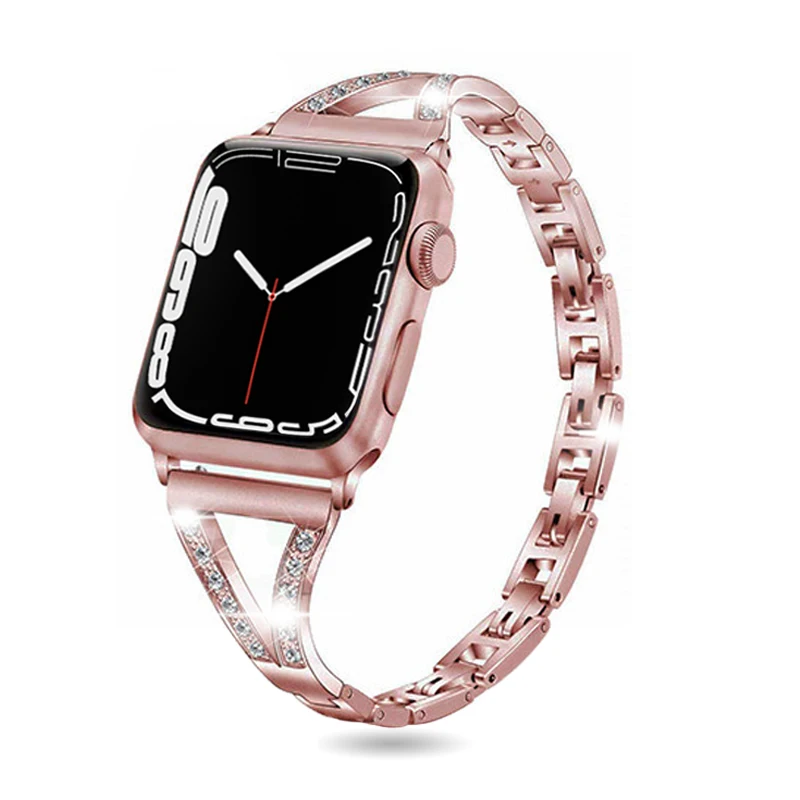 Роскошный браслет из нержавеющей стали с бриллиантами для Apple watch series 7 6SE 45 мм 44 мм 41 мм, женский браслет для iwatch series 5 4 3
