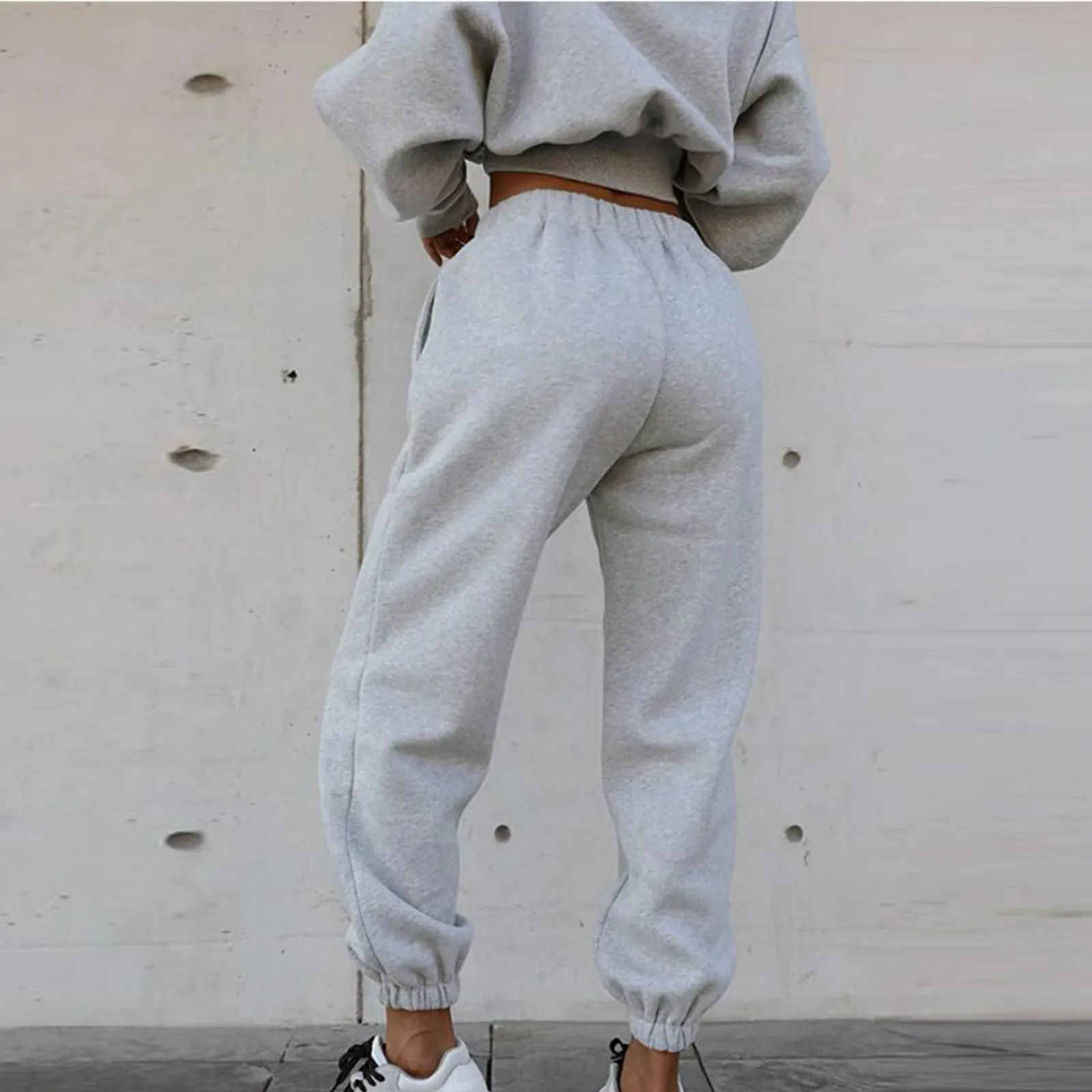 Женская Повседневная однотонная толстовка с длинными рукавами, брюки, спортивный костюм