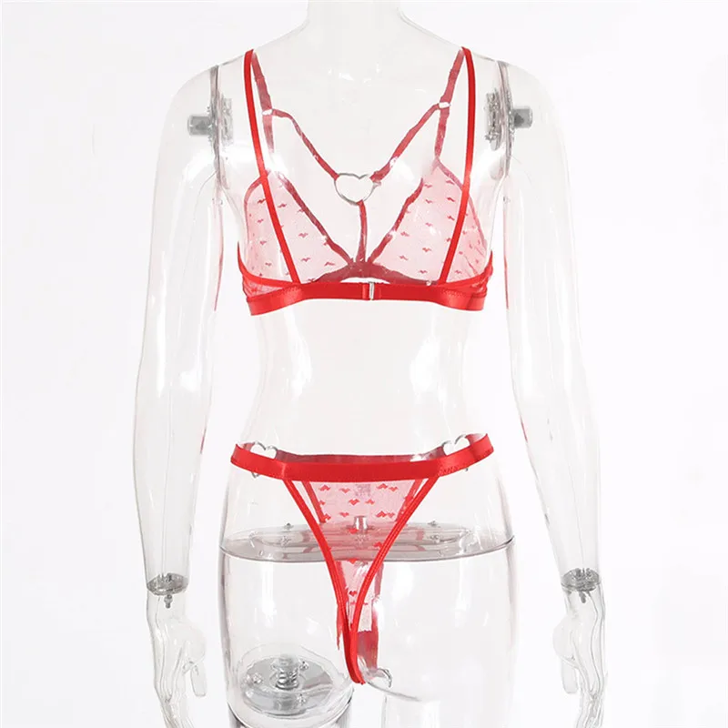 Женское нижнее белье, удобный комплект с бюстгальтером с принтом Love, привлекательное интимное нижнее белье, женское Прозрачное нижнее белье, эротическое кружевное нижнее белье