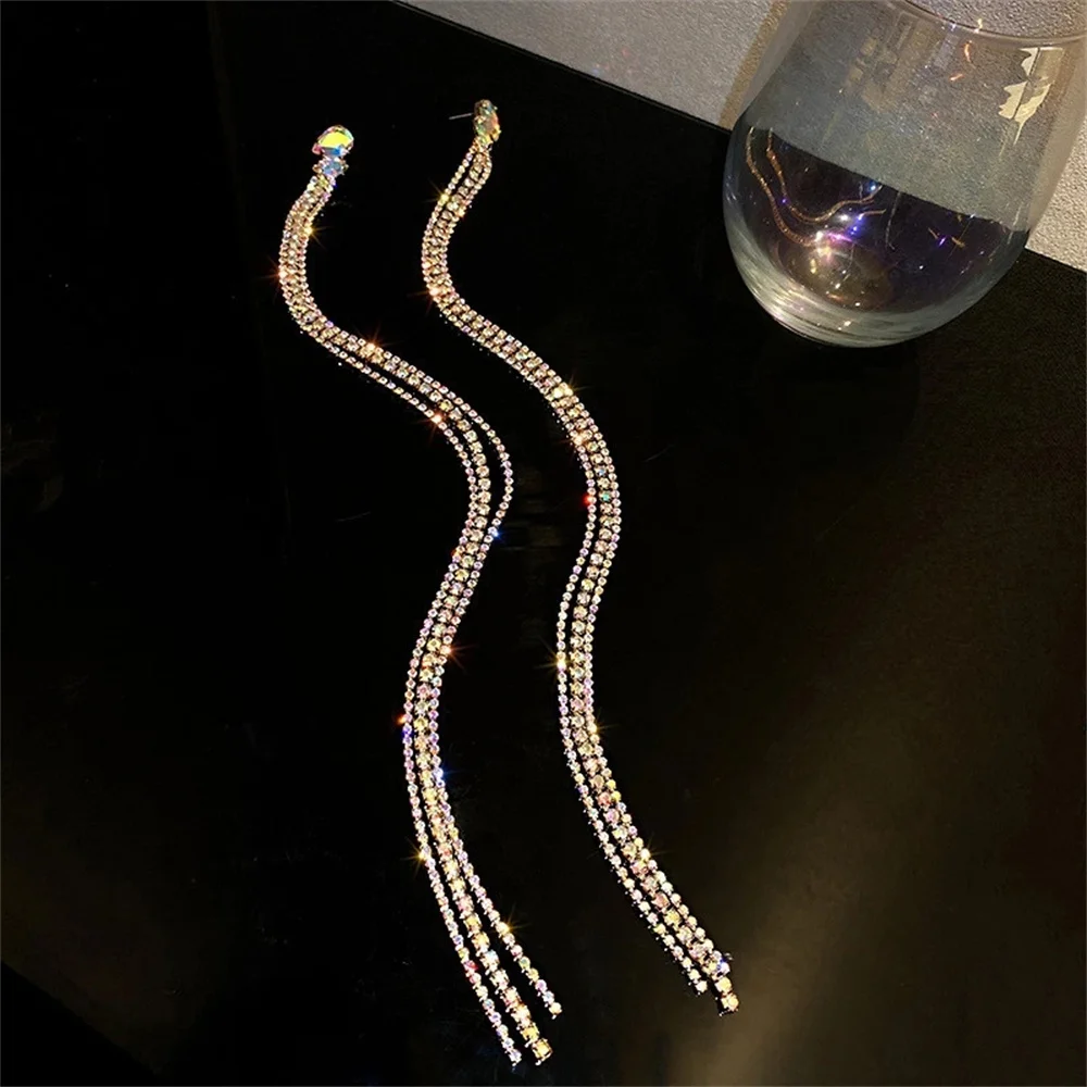 Модные длинные висячие серьги оверсайз Стразы с кисточками для женщин с фианитами красочные кристаллы висячие серьги эффектные ювелирные изделия