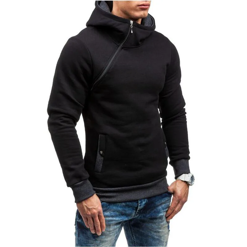 Мужские толстовки с капюшоном 2018, с косой молнией, однотонные под...