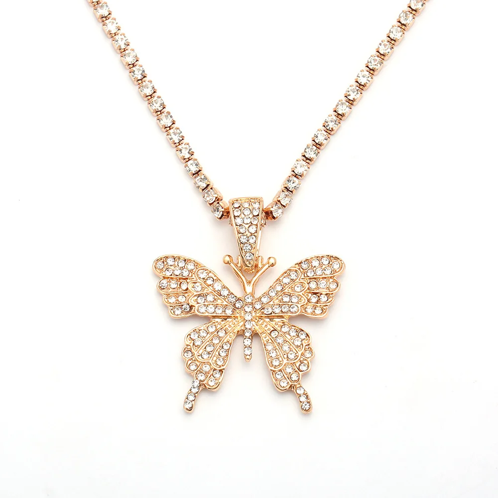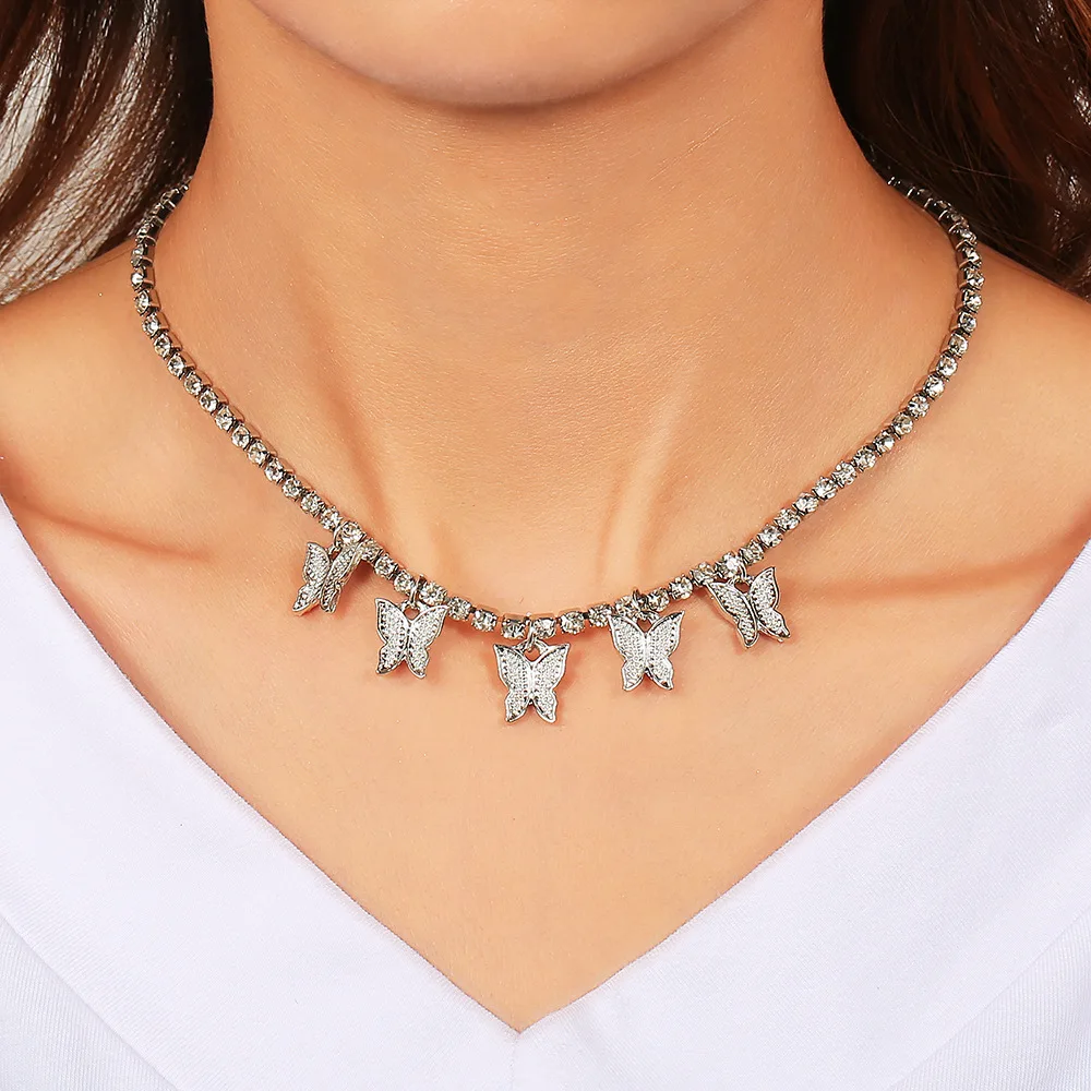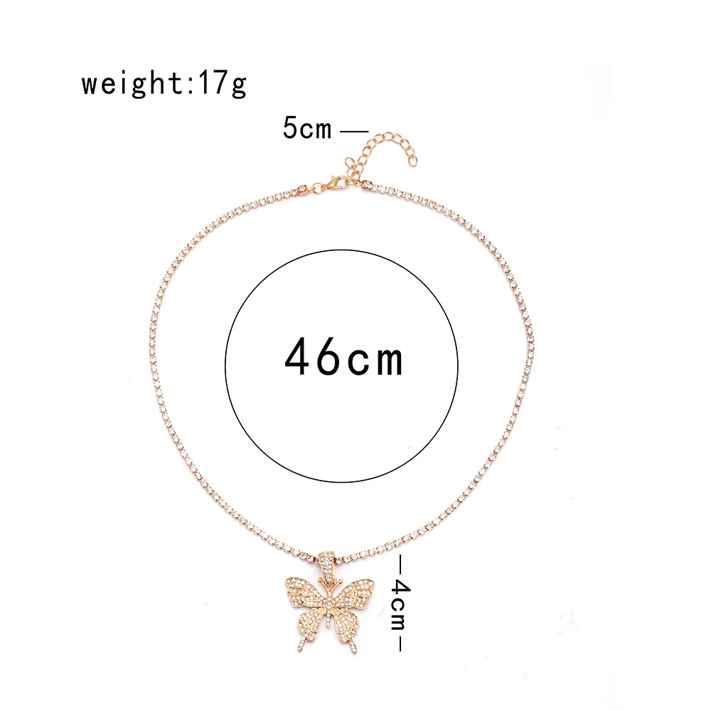 Модное ожерелье с подвеской-бабочкой, цепочка Стразы для женщин, блестящая цепь для тенниса, чокер с кристаллами, украшения со стразами
