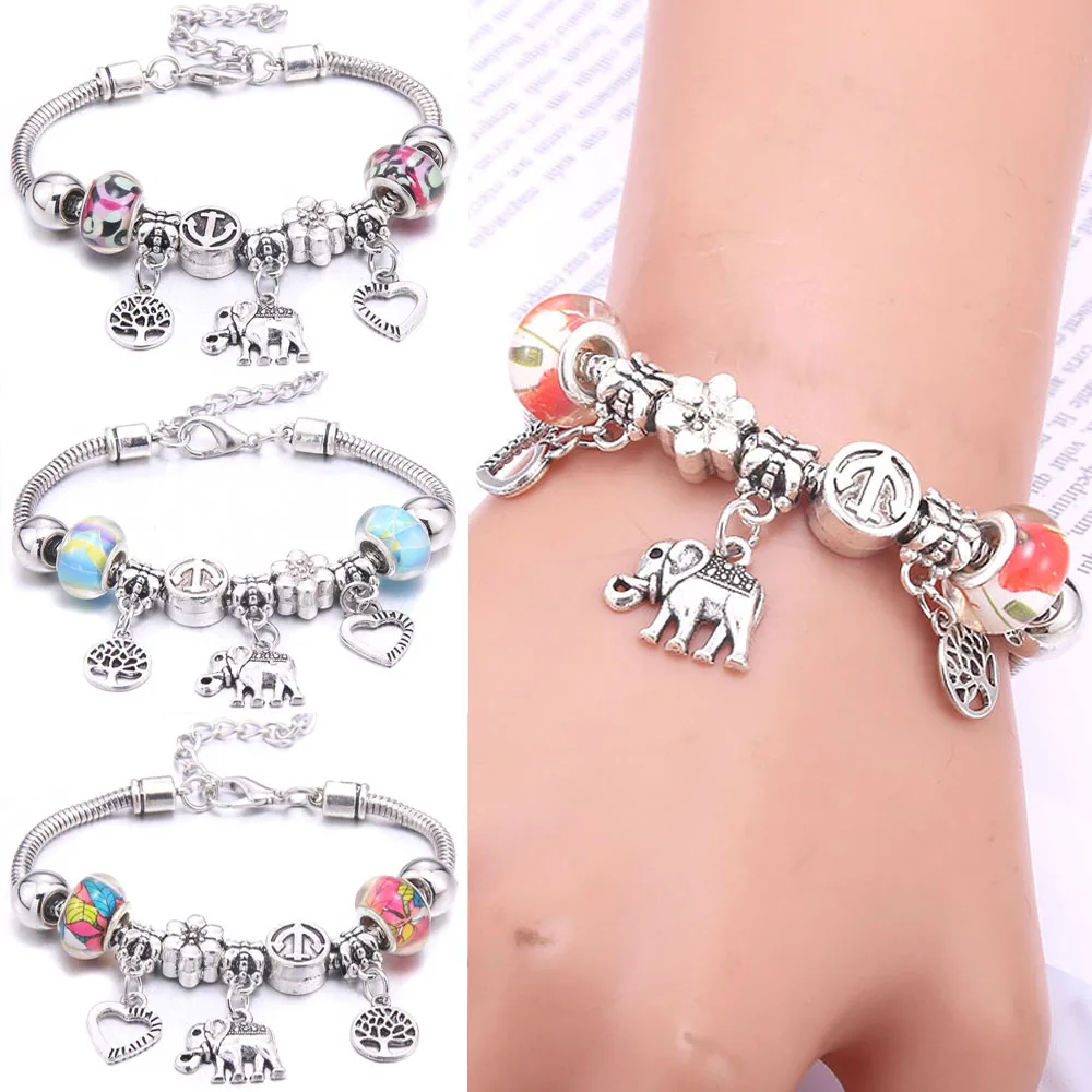 Браслет с бусинами в виде слона, браслеты с подвесками в виде сердца и перьев для женщин и мужчин, оригинальные браслеты с кристаллами и цветами в виде сердца, браслет с бусинами в подарок