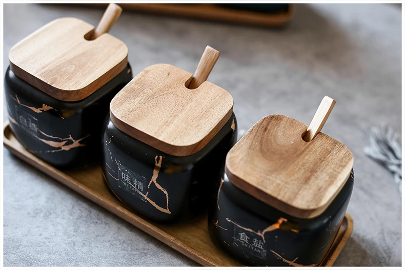 Керамический набор баков для приправ в скандинавском стиле, деревян...