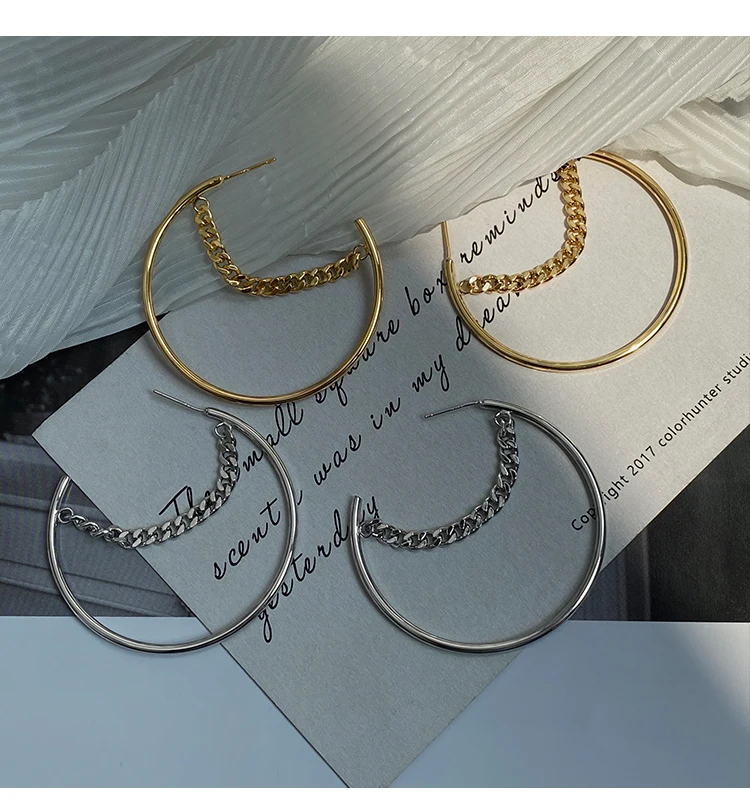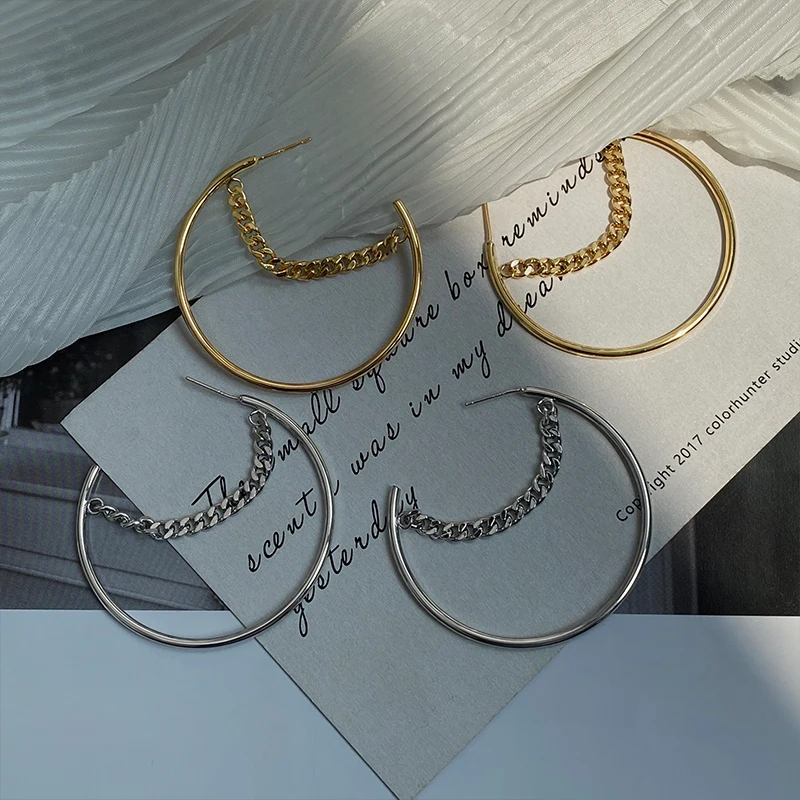 Серьги-кольца в европейском и американском стиле женские, цепи из металла, круглые ювелирные украшения в Корейском стиле, Простые Вечерние