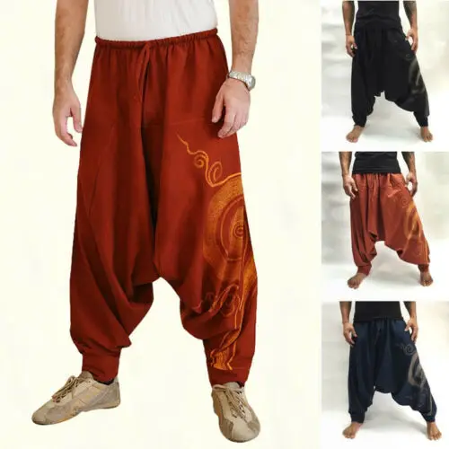 Мужские повседневные мешковатые шаровары с эластичным поясом для йоги в стиле хиппи, мужские мешковатые шаровары в стиле бохо в стиле хиппи, Алладин в стиле хиппи в стиле бохо, шаровары на Alibaba