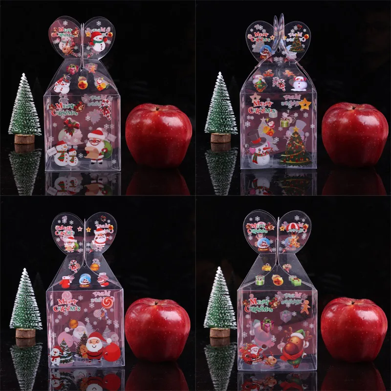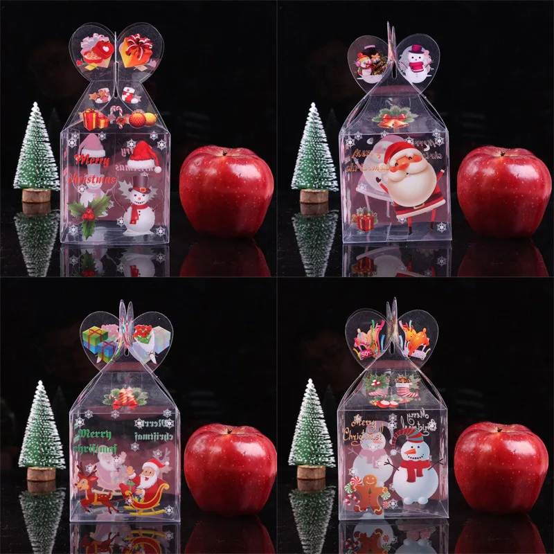 Рождественские коробки с принтом, прозрачные коробки, коробки для Apple, коробки для упаковки конфет, подарочные коробки, милый Рождественский стиль, креативный прозрачный