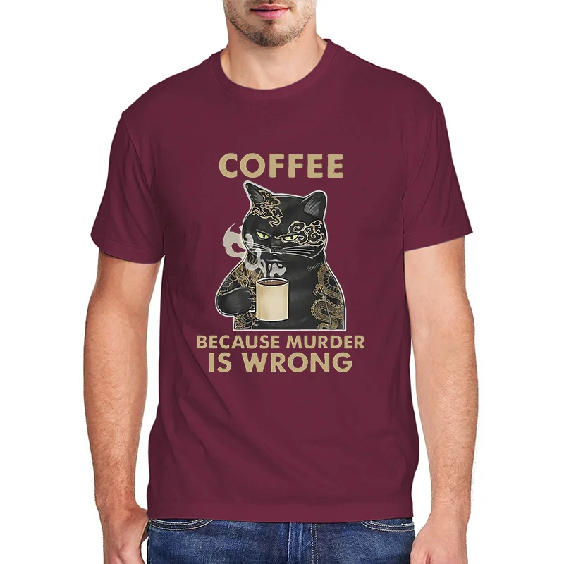 Забавная Винтажная футболка с рисунком черного кота и кофейной кошки, Мужская футболка Харадзюку из 100 хлопка, Мужская Уличная одежда