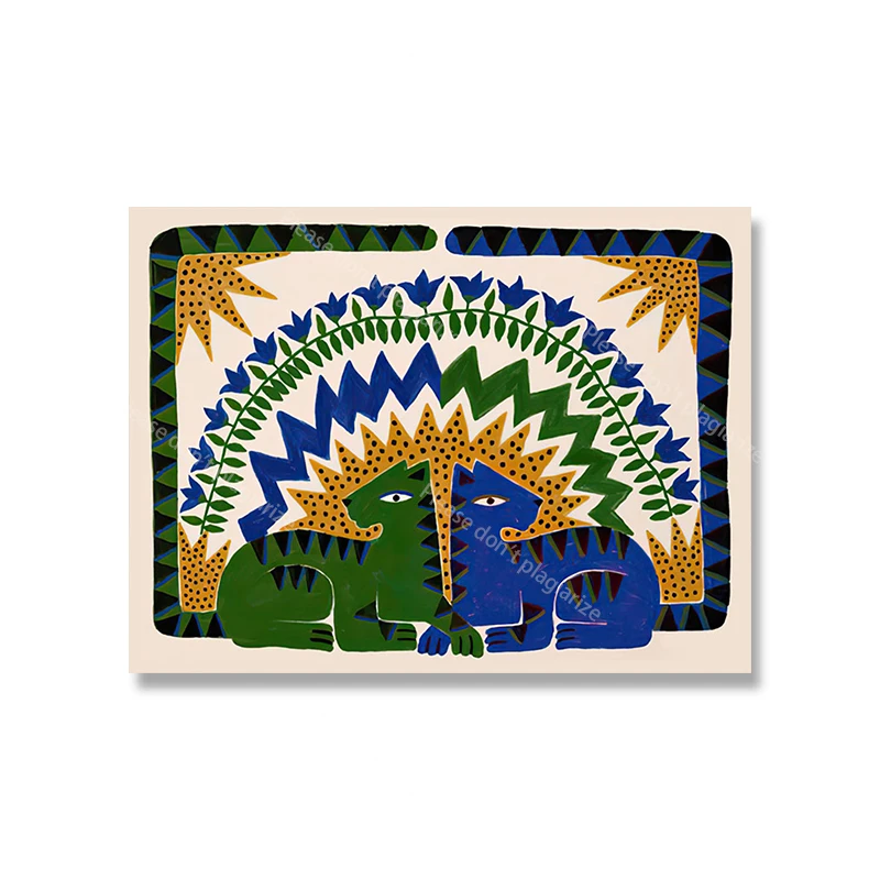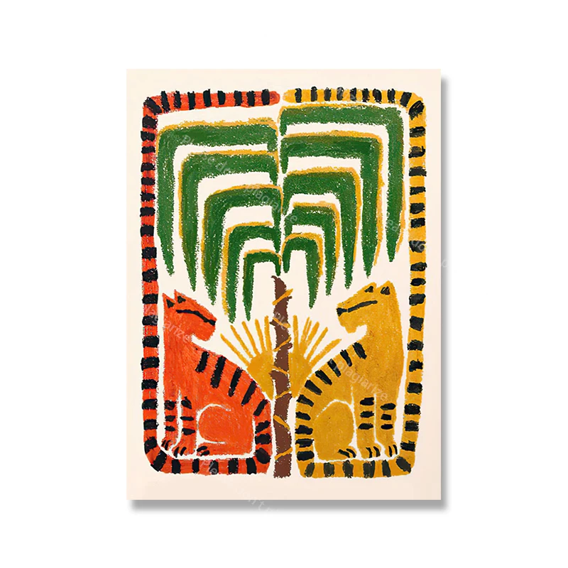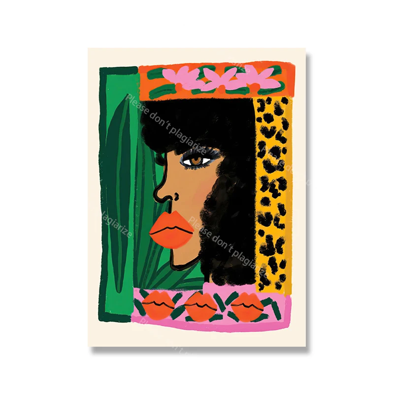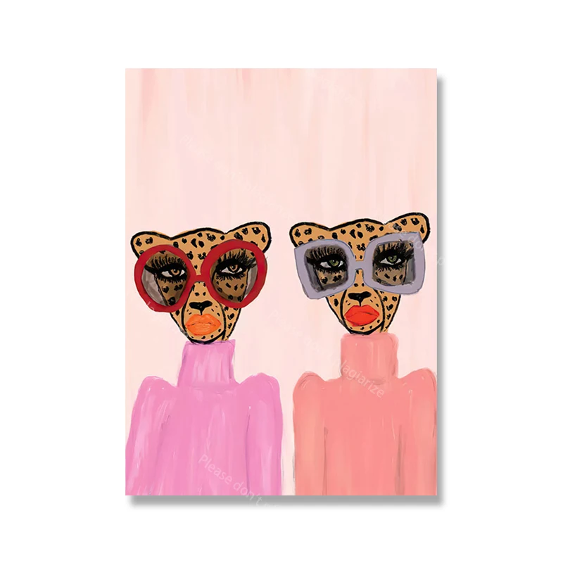 Мультяшная девушка Ягуар разноцветная стена искусство холст картина...