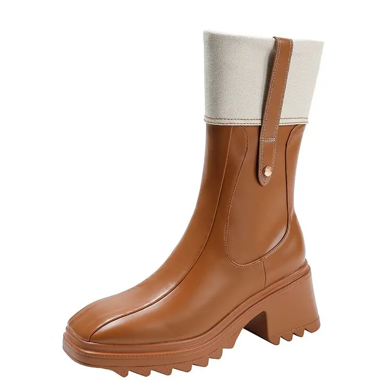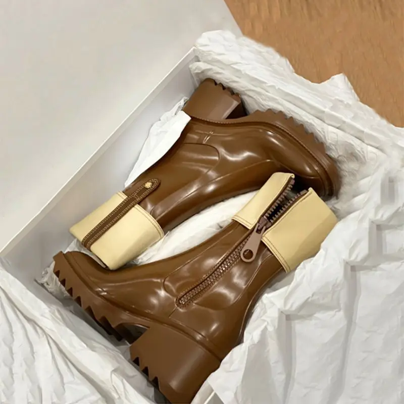 Стильные коричневые женские осенне-зимние ботинки в британском стиле на толстом каблуке с квадратным носком и боковой молнией на среднем каблуке ботинки мартинсы на высоком каблуке