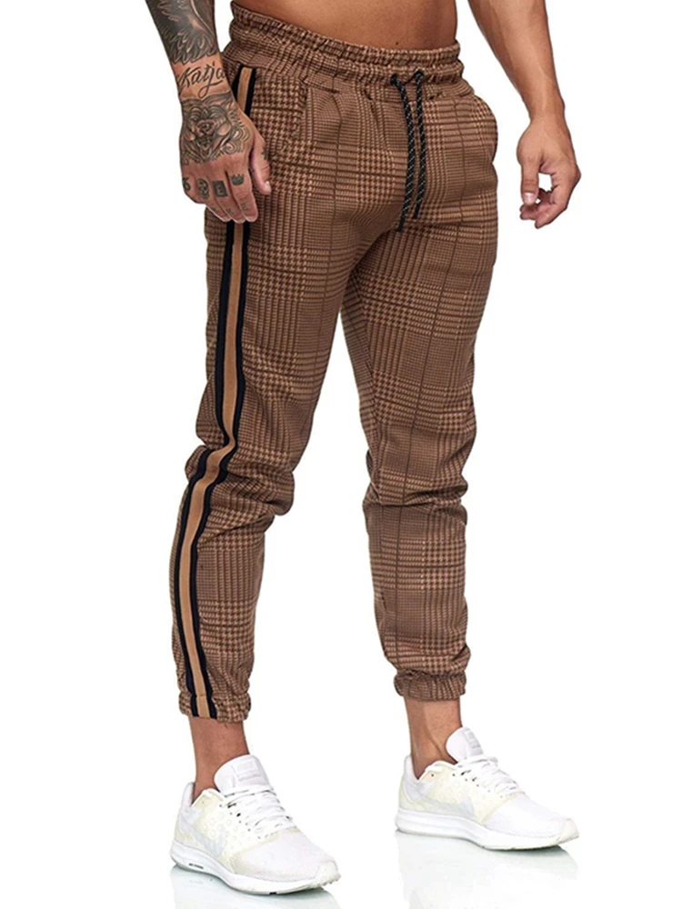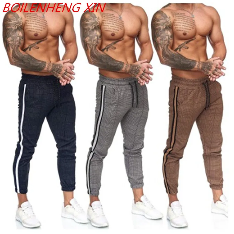 Брюки-Карандаш мужские в клетку, модные повседневные зауженные штаны в полоску, джоггеры с эластичным поясом, повседневная одежда, осень