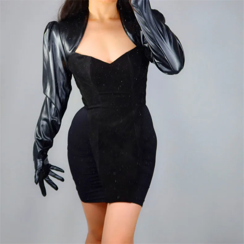 Новинка 2020, латексные перчатки-болеро, блестящие кожаные искусств...