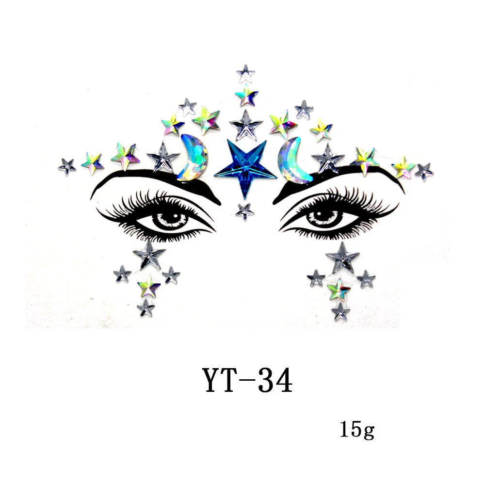 Особенности: Стильный, красивый, приятный на ощупь, износостойкий.Благодаря супер клеящему основному клею Стразы легко отпадутЛегко очищается и паста.Не оставляя остатков, когда он удален.Применение: его можно наклеить на лицо, области между бровями, лбом и другими частями и служить аксессуаром для церемонии, вечеринок и танцев.
