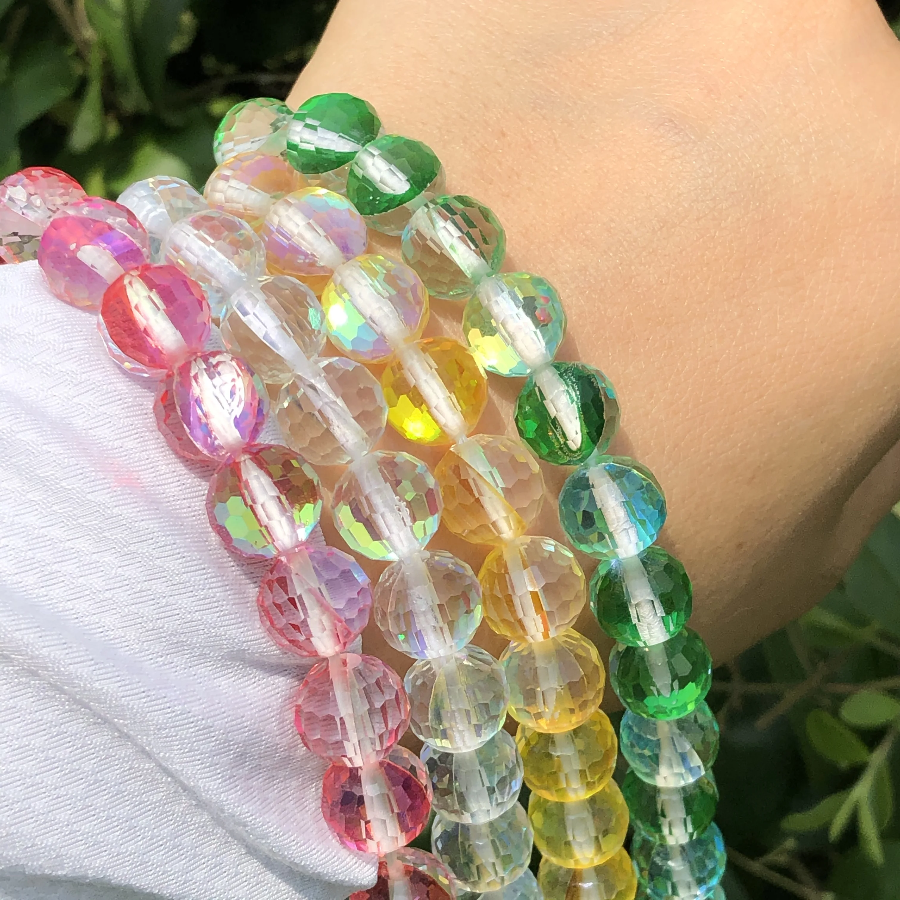 Граненые AB белые блестящие Кварцевые бусины с лунным камнем, Блестящие кристаллы, бусины россыпью, зеркальные бусины, браслет 6810 мм