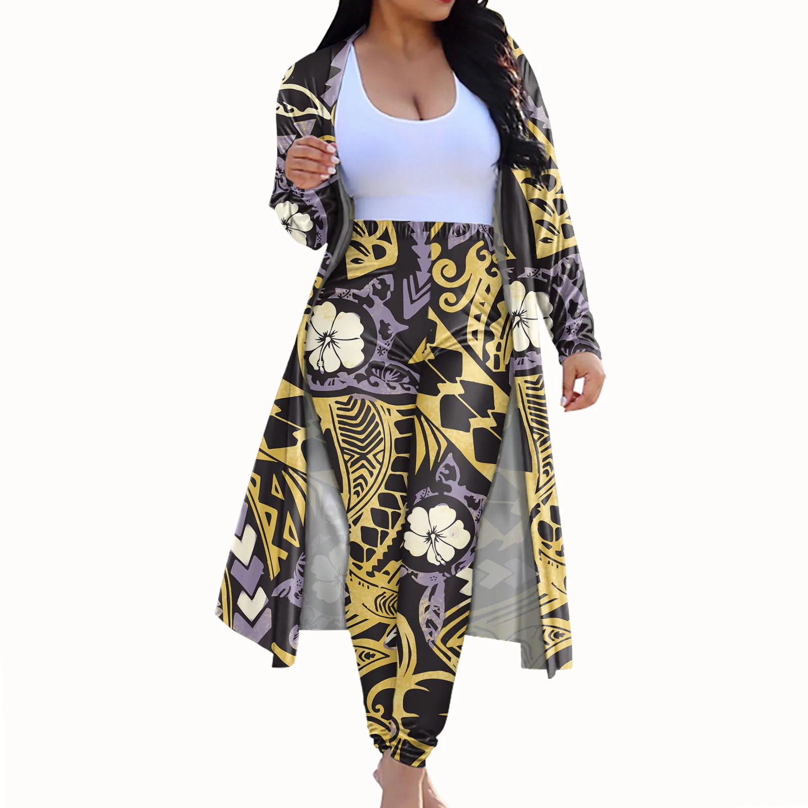 OEM комплекты из 2 предметов с татуировками Самоа, полинезийская татуировка, 2020 брюки, Кардиган с длинным рукавом + облегающие леггинсы с высокой талией, брючные костюмы, наряды