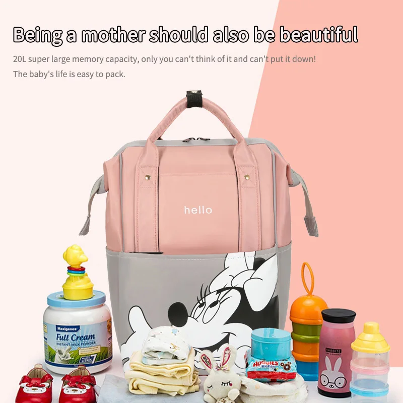 Многофункциональный водонепроницаемый рюкзак для мам, вместительная сумка на коляску для подгузников с диснеевскими Минни, для путешествий и отдыха на открытом воздухе