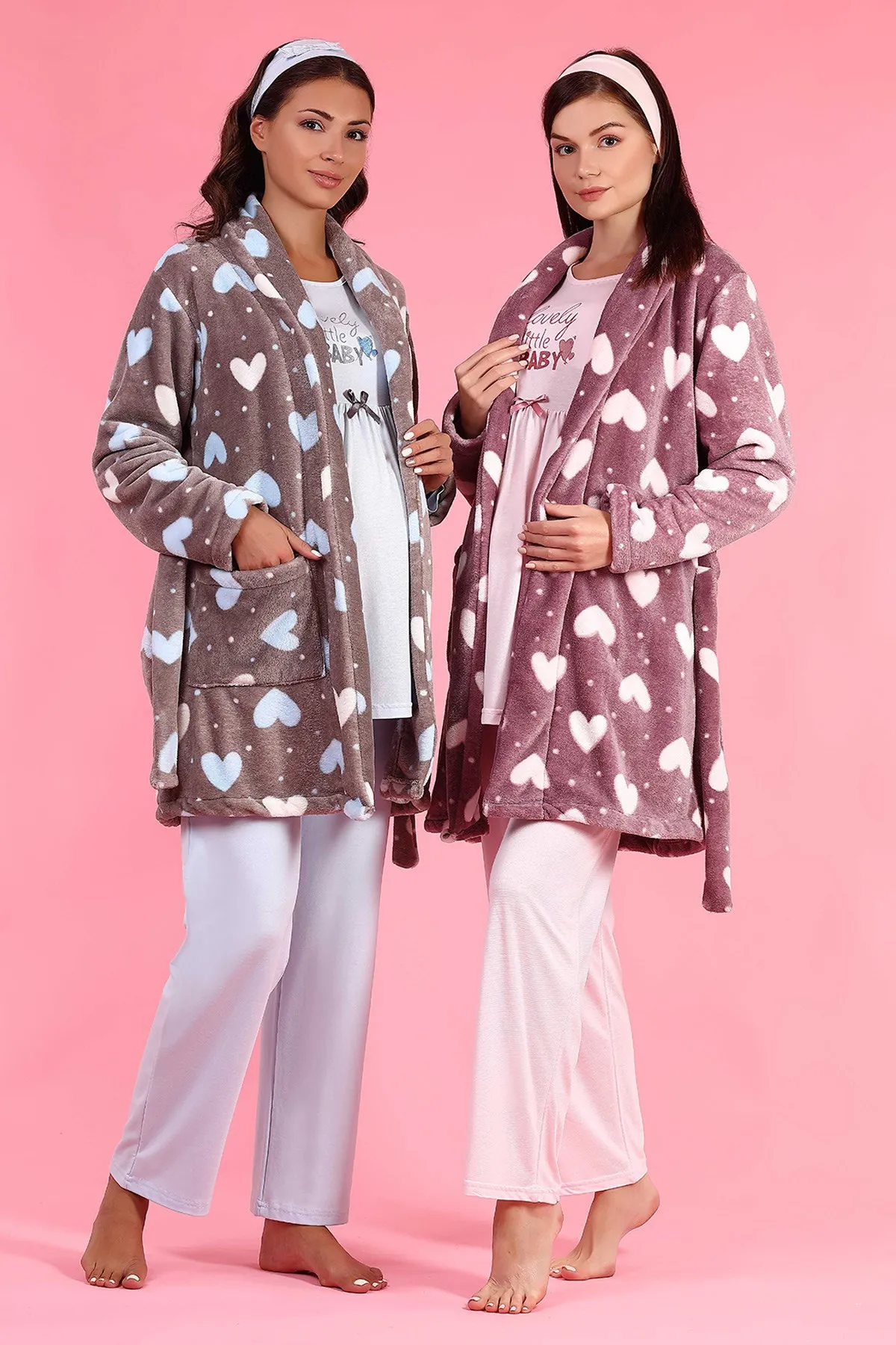 Послеродовой халат для беременных пижамный комплект из 3 предметов Одежда для беременных флисовый халат Хлопковая пижама зимний сезон