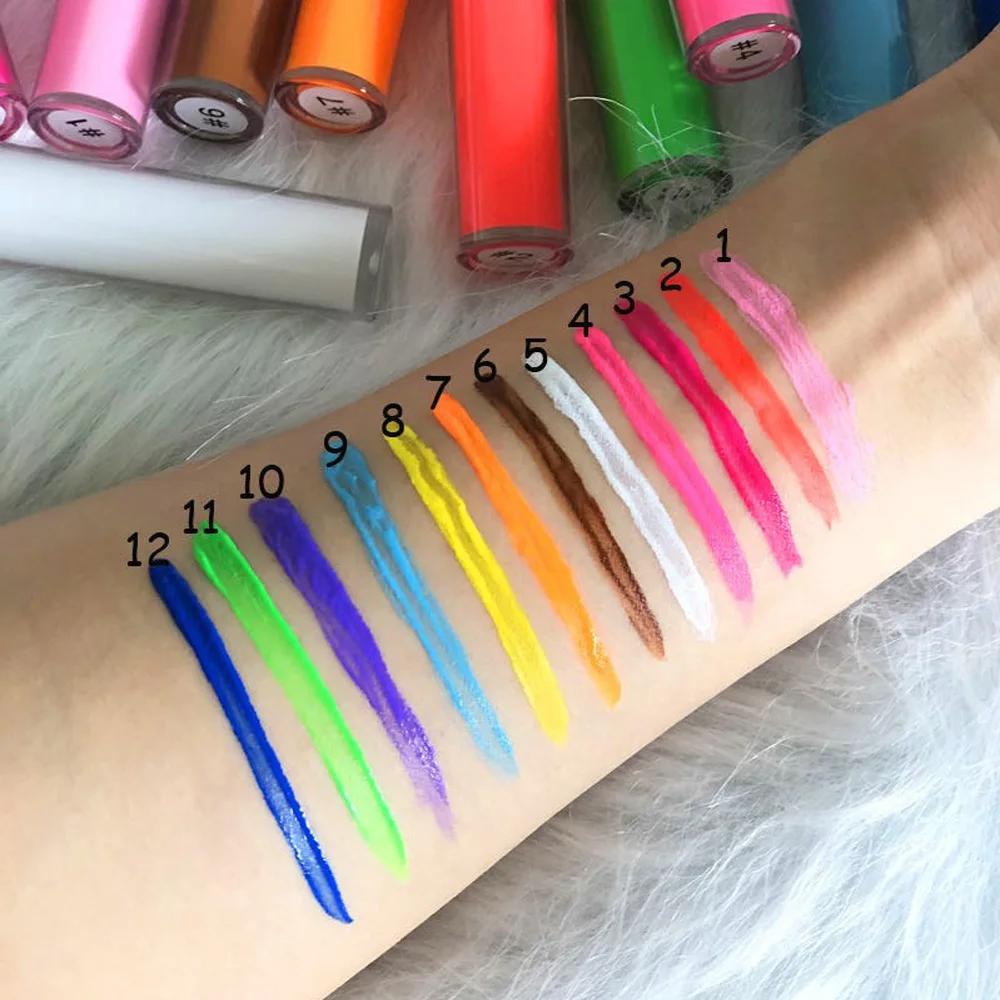 12 цветов флуоресцентная жидкая подводка для глаз, цветная флуоресцентная жидкая подводка для глаз, частная этикетка, Пользовательский логотип, оптовая продажа оптом