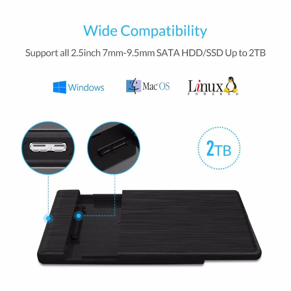 Доступно 4 варианта, пожалуйста, выберите подходящую версию в соответствии с вашими потребностями:1. Версия USB3.02. Версия Type-C3. Версия USB3.0 с сумкой для жесткого диска (размер 160*110*40 мм)4. Версия Type-C с сумкой для жесткого диска (размер 160*110*40 мм)Спецификация1.USB3.0 с UASP, до 5 Гбит/сПоддерживает новый протокол UASP, который значительно повышает скорость синхронизации, уменьшает использование ЦП, задержку передачи данных и время ожидания.2.Type-C, до 6 Гбит/сSATA3.O · Теоретическая скорость достигает до 6 Гбит/с.3. Интеллектуальный режим снаИзбегайте частого взаимодействия HDD, энергосбережения и продления срока службы.4. Предназначен для 7 мм/9,5 мм 2,5 "жесткого диска SATA.