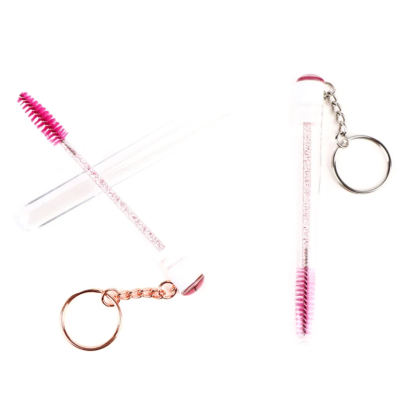 Бриллиантовый брелок для ключей, трубка для кисточки для ресниц с золотой цепочкой, блестящая тушь для ресниц, палочка для удлинения ресниц, прозрачный контейнер для микро-расчески