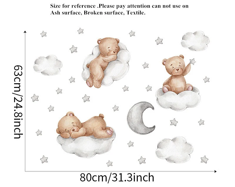 Милые настенные наклейки с медведем, облаком, Луной и звездами для ...