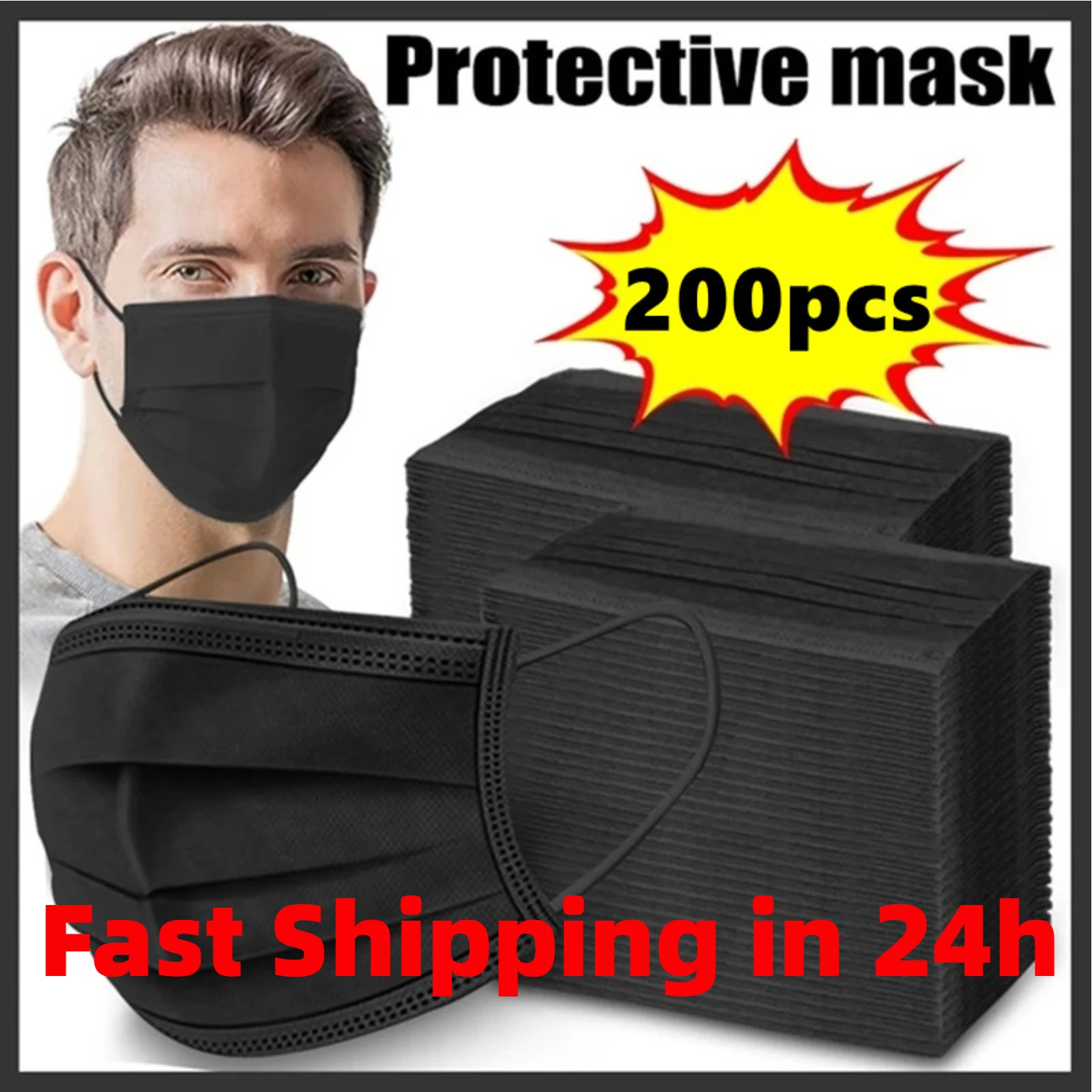2-200 шт. одноразовые маски черная маска для взрослых из 3 слоев фи...