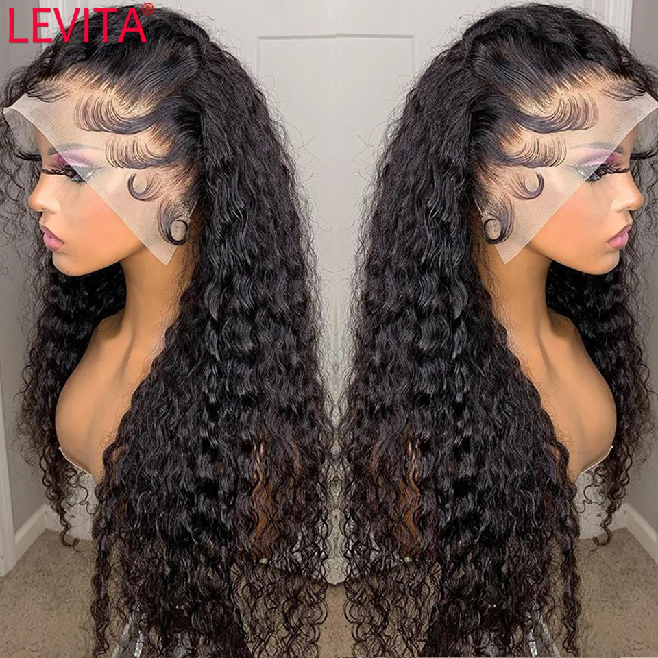 LEVITA парик с глубоким волнистым фронтальным париком, бразильский парик из человеческих волос, предварительно выщипанный, 30 дюймов, кружевные передние парики для женщин, парик с глубоким кудрявым кружевом