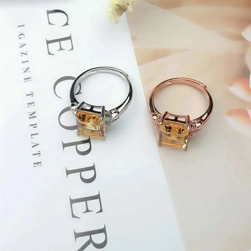 Кольцо женское из натурального желтого цитрина, 10 х8 мм, серебро 925 пробы