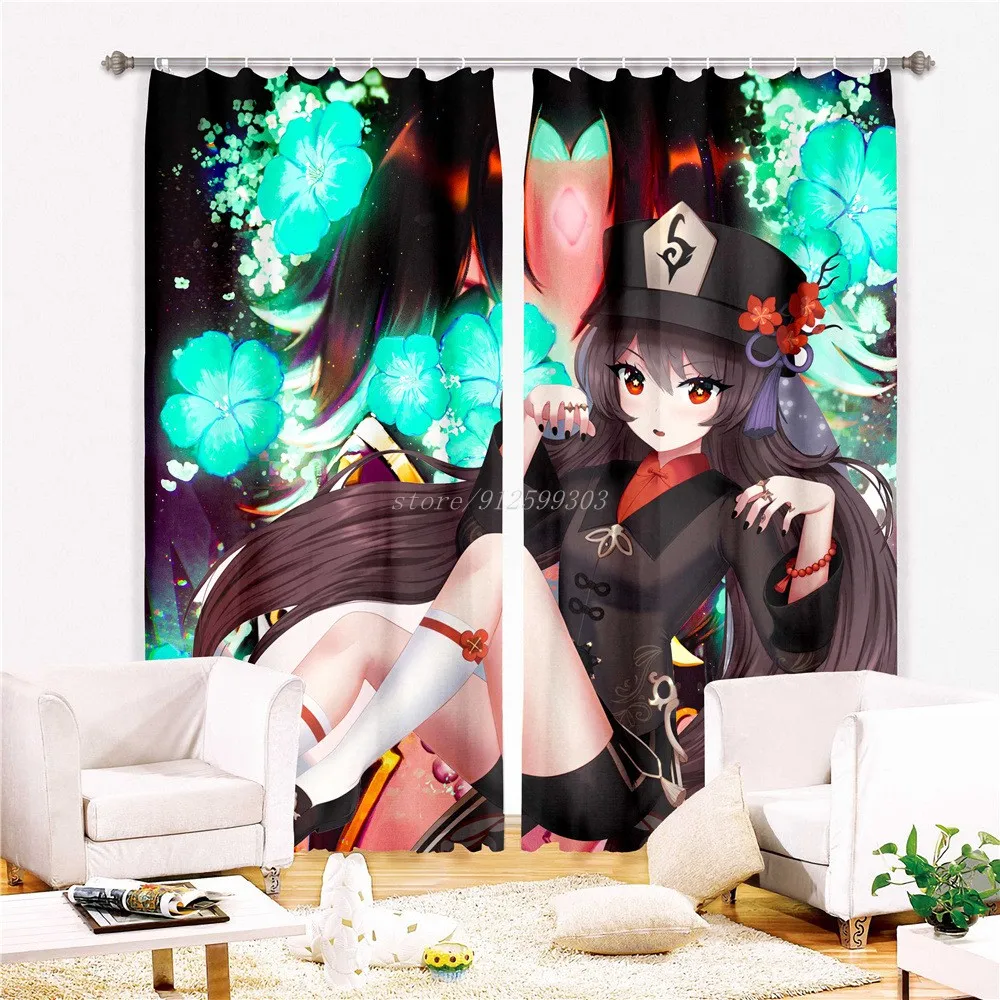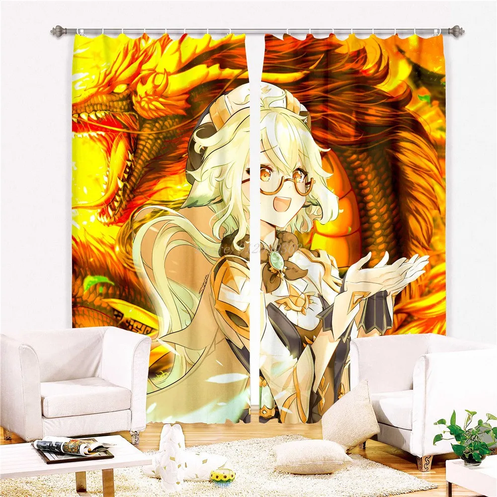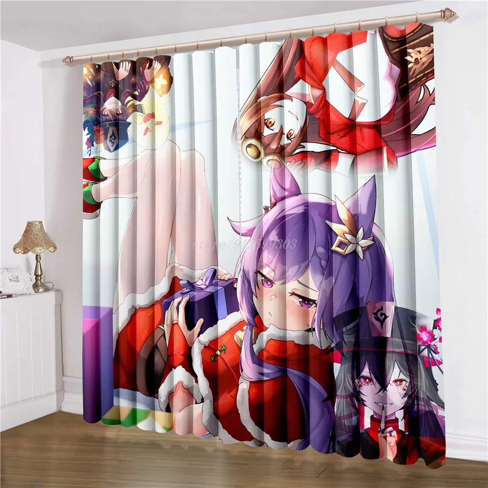 Аниме Genshin ударопрочные шторы, кухонные затемняющие шторы для мальчиков, гостиной, спальни, оконные шторы, занавески, затемняющие шторы