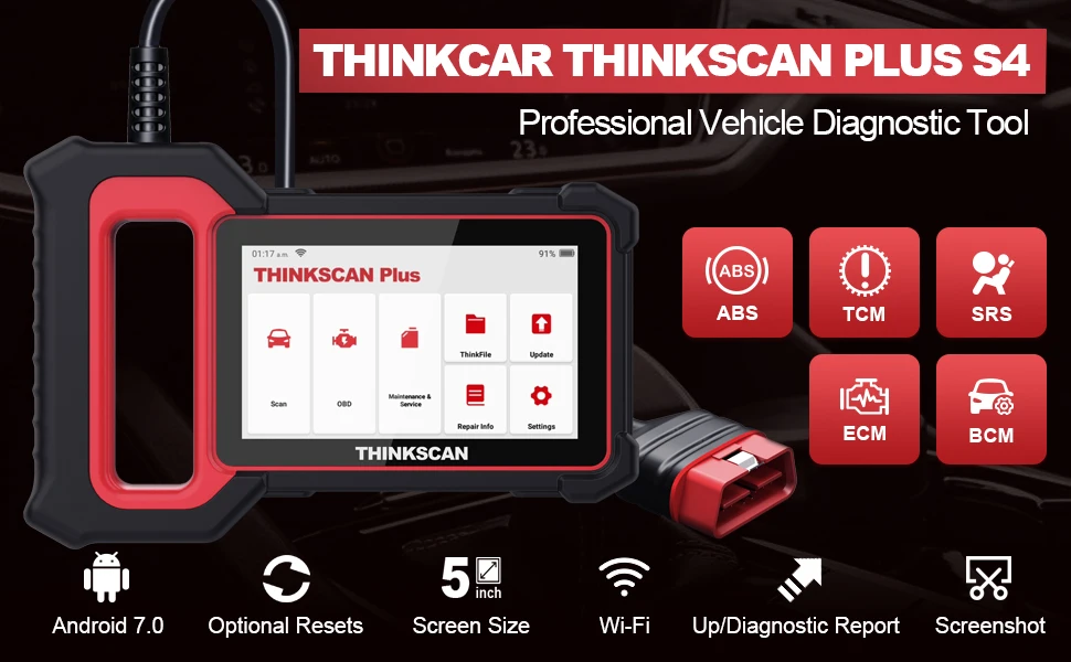 THINKCAR Thinkscan Plus S4 OBD2 автомобильный сканер Профессиональный ABS SRS 3 перенаборы ECM TCM ABS SRS BCM Система s считыватель кодеров OBD Автомобильные диагностические инструменты (5 систем; Пожизненное бесплатное обновление через WIFI; DIY выбрать 3 сброса услуги от 28 сброс функции; Мультиязычный; 5-дюймовый сенсорный Экран; Поддержка Экран снимков и Экран Регистраторы; Сканирование qr-кода для совместного использования и печати; AUTO-VIN; Поддержка технической удаленной помощи)