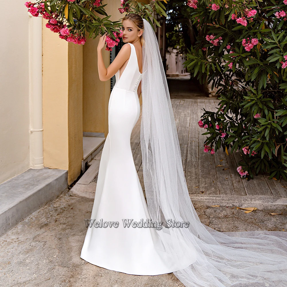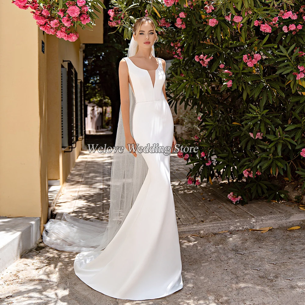 Женское свадебное платье с юбкой-годе, белое Очаровательное платье невесты со шлейфом без рукавов, 2022