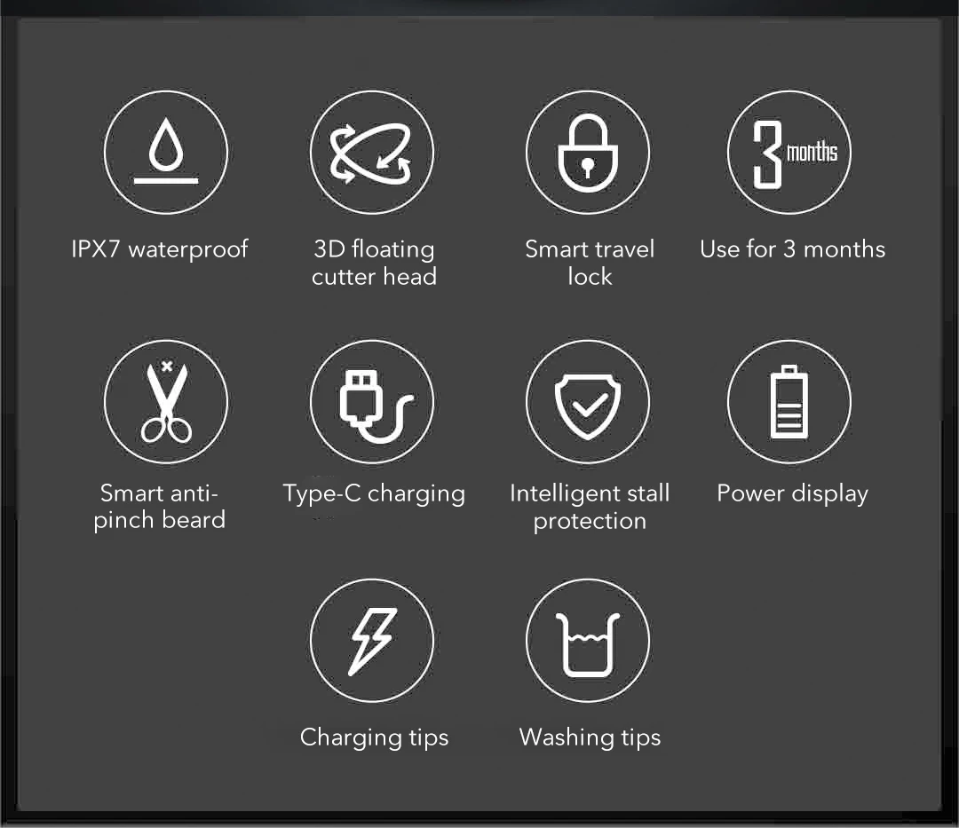 IPX7 водонепроницаемая/3D плавающая режущая головка/используется в течение 3 месяцев/Интеллектуальная антиприжимная борода