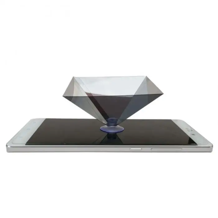 2. Просто прикрепите пирамиду к телефону с помощью предоставленной присоски, и вы готовы начать играть с псевдоголограммой со своим смартфоном.