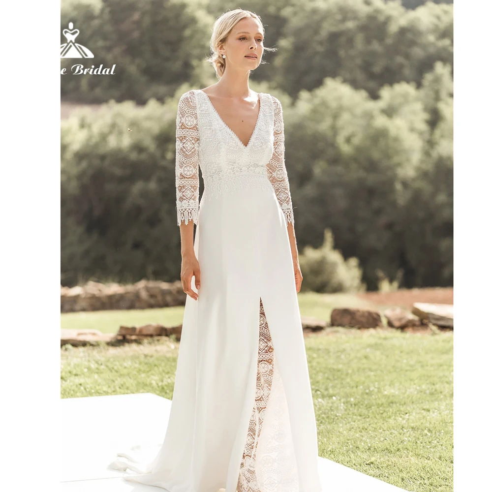 Шифоновое свадебное платье с V-образным вырезом, открытой спиной и бантом